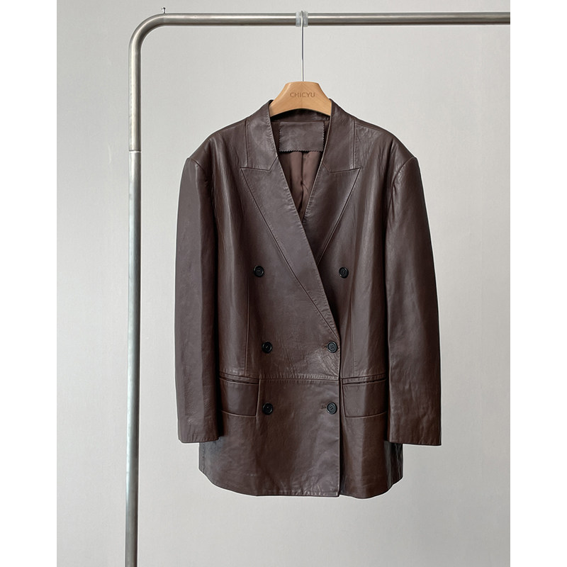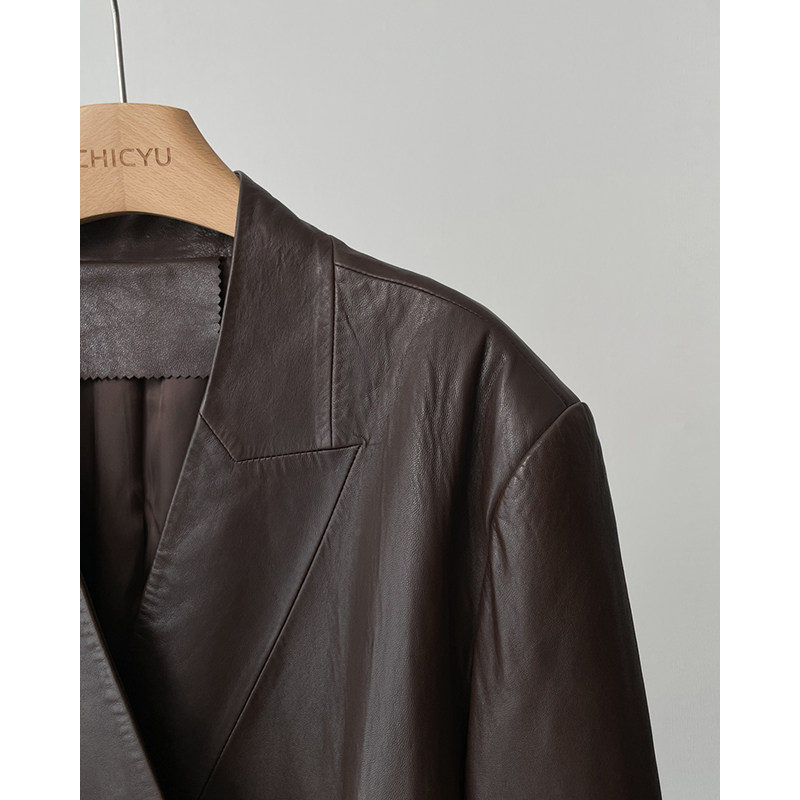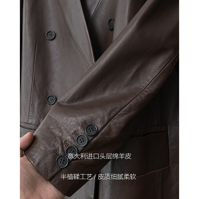 高档半植鞣绵羊皮春秋宽松休闲复古真皮皮衣西装 外套女B1658