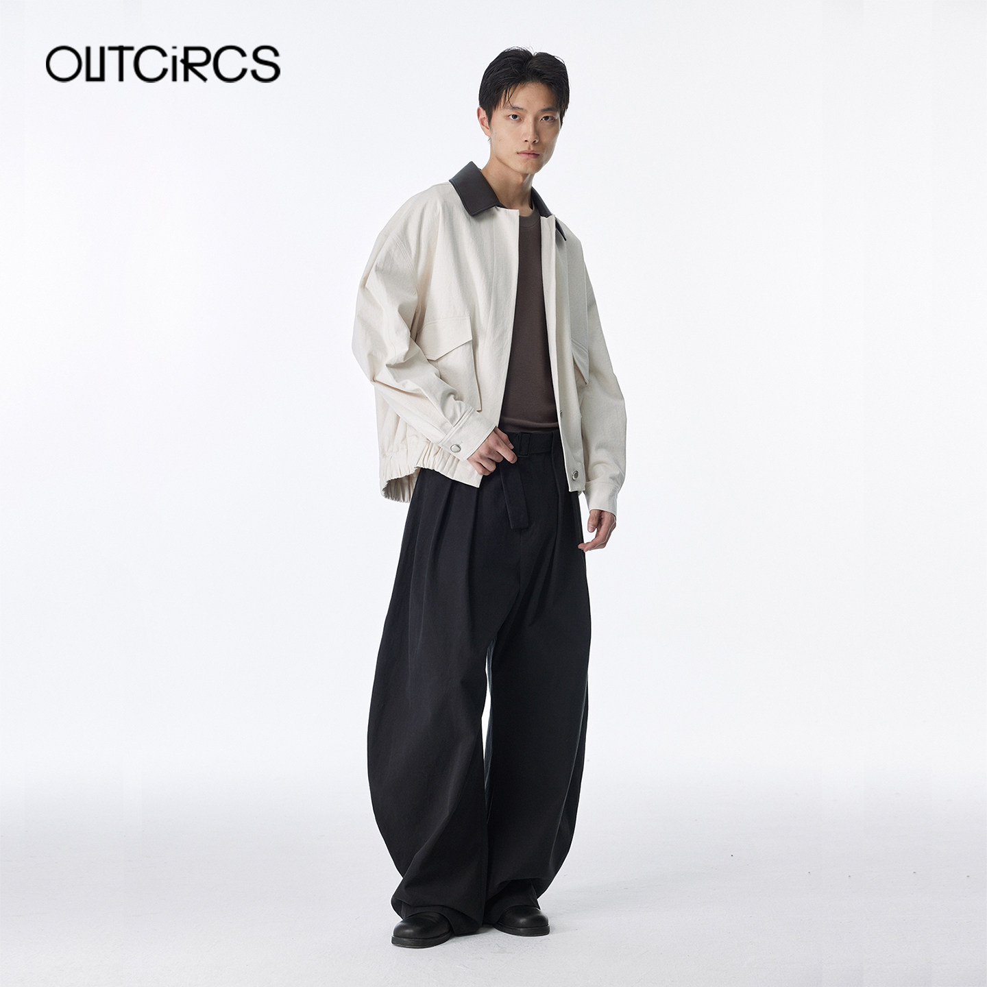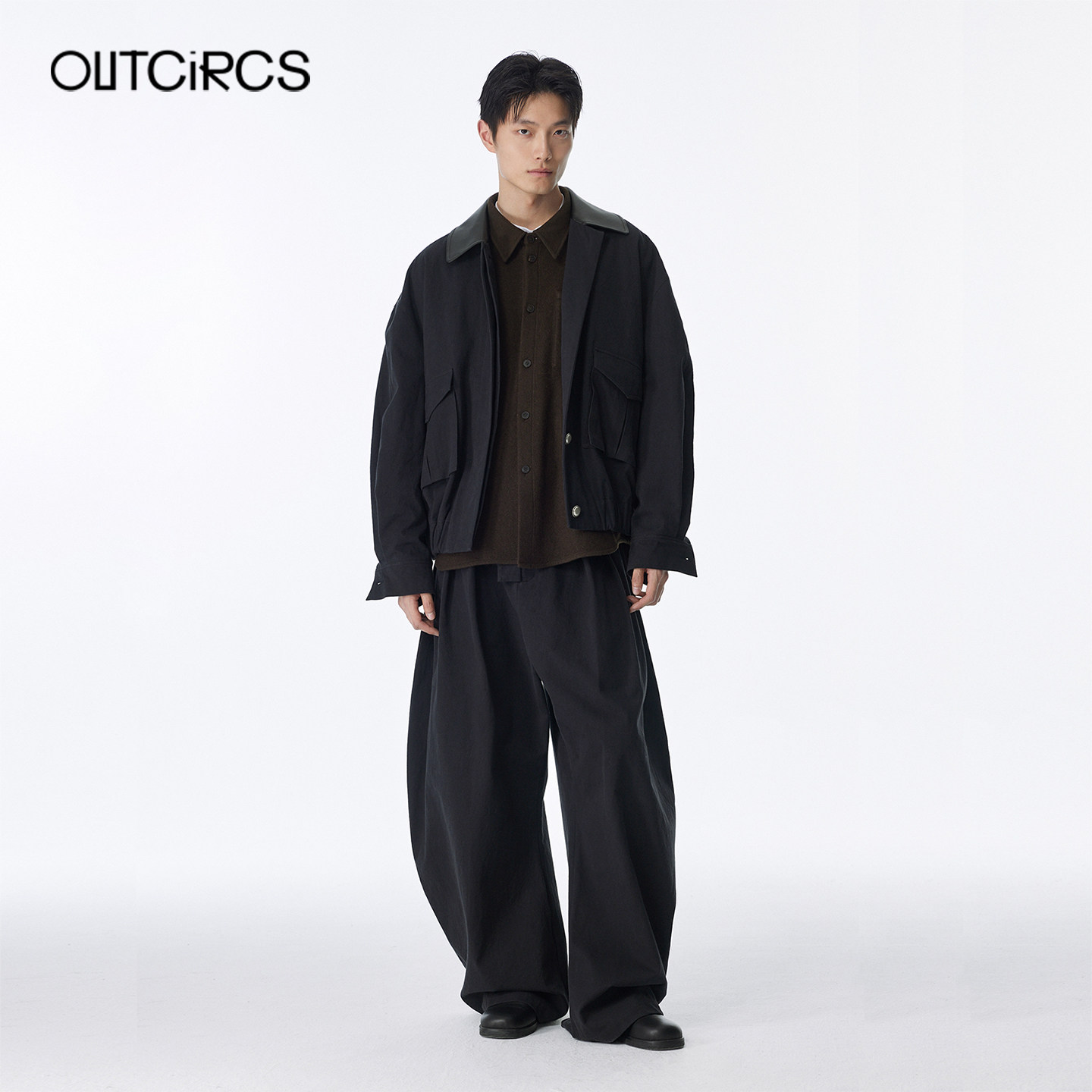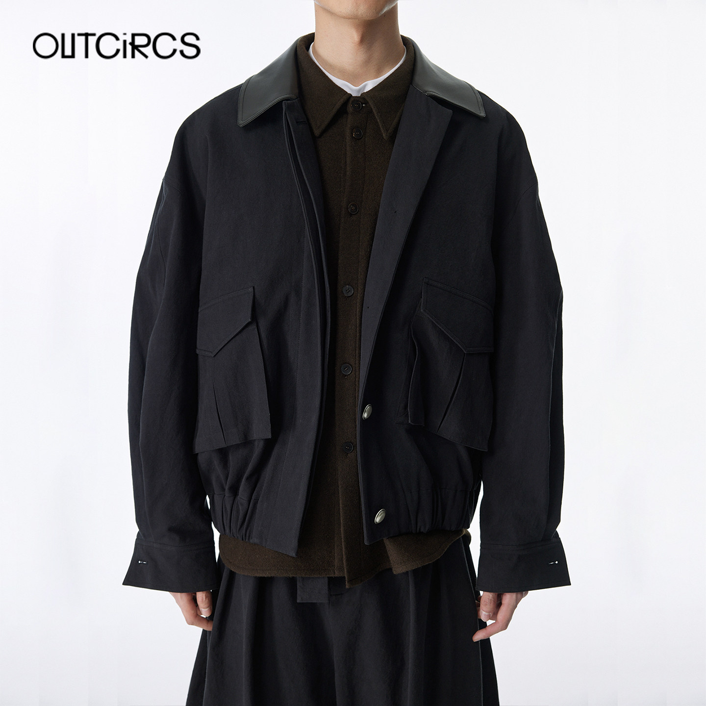 立体裁剪通勤休闲 2025秋冬新款 OUTCiRCS拼皮工装 感廓形夹克