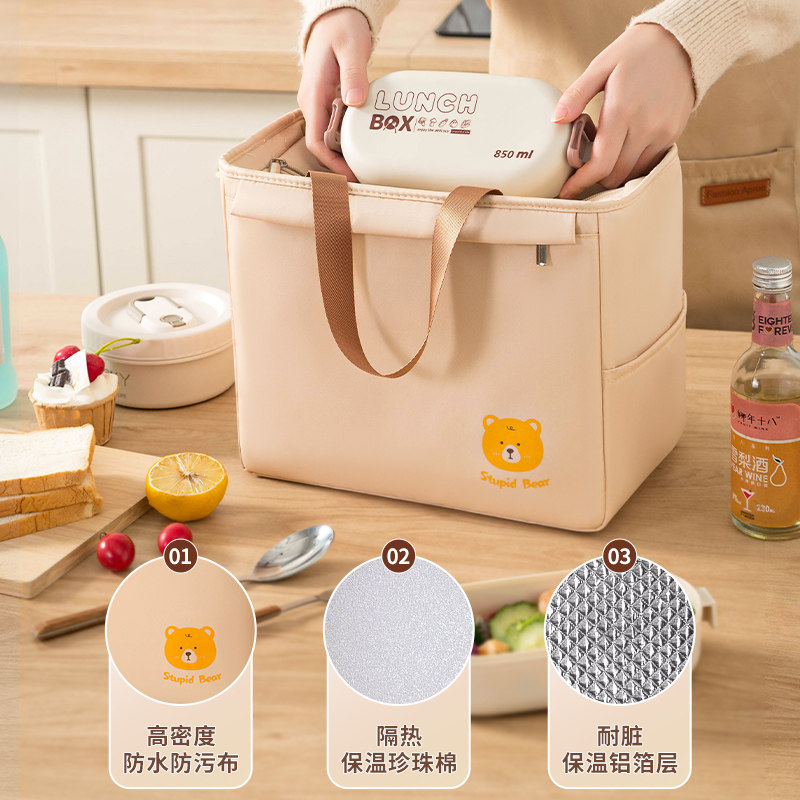 可爱手提便当包保温铝箔多口袋学生上班族午餐包收纳包饭盒袋女生