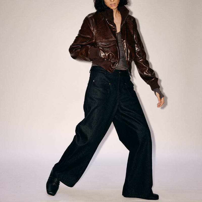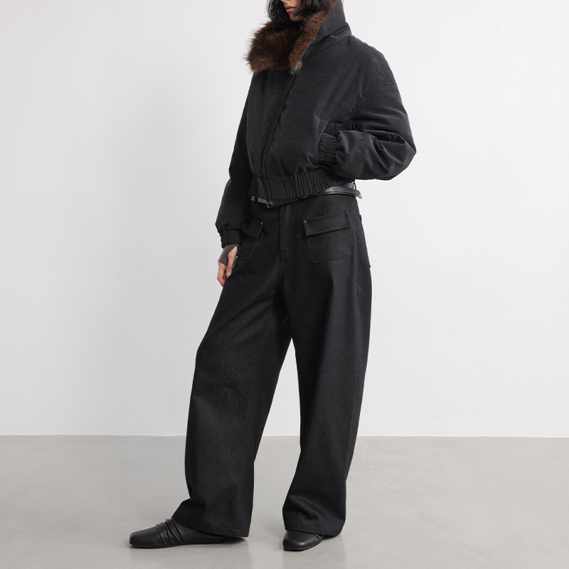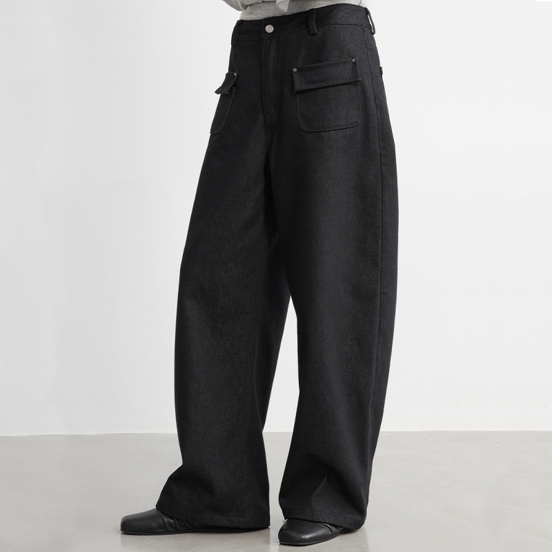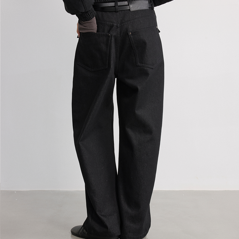 微刀直筒牛仔裤 JCAESAR 反面磨毛工艺 前翻袋弯刀磨毛黑牛 WOMEN