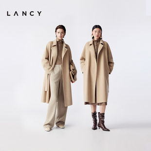 IHIMI海谧100绵羊毛手工双面呢大衣女秋冬季 气质显瘦宽松毛呢外套