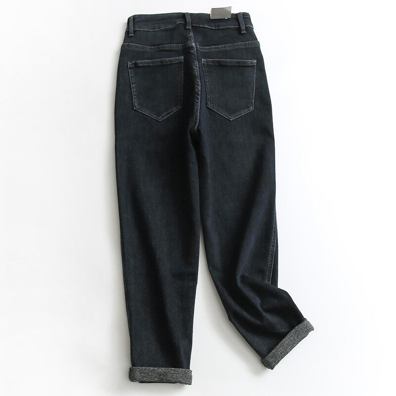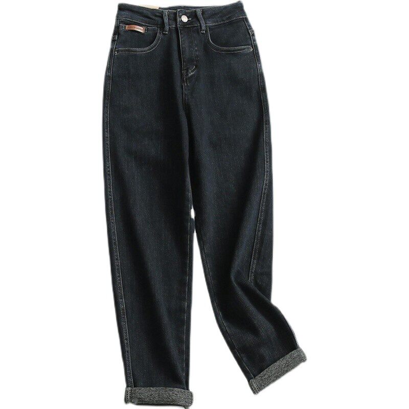 脚秋冬新款 长裤 2021哈伦裤 牛仔裤 流行百搭女裤 I808纯色口袋翻边裤