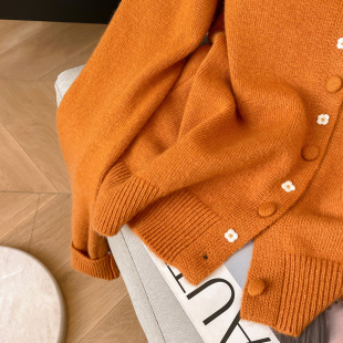 春季 小C家 女2026新款 针织开衫 圆领单排扣设计感减龄毛衣 刺绣长袖