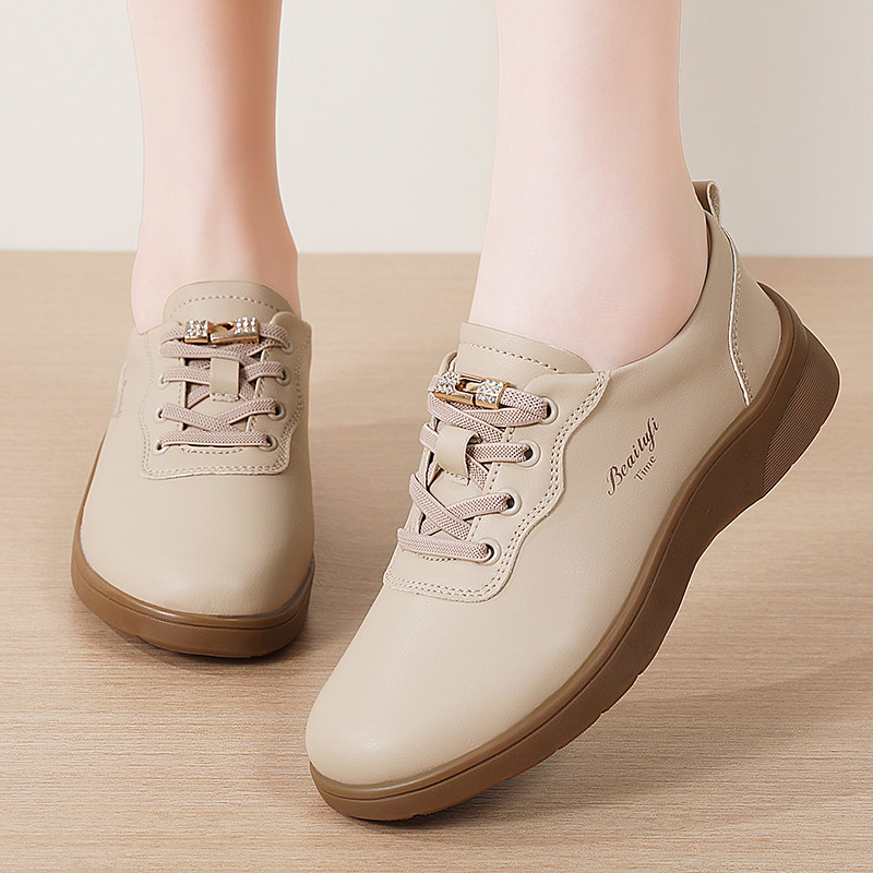 2025秋季 软底不累脚单鞋 新款 一脚蹬皮面防水乐福鞋 真皮女鞋 妈妈鞋