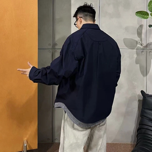 宽松休闲纯色长袖 秋季 上衣外套 男生2025新款 蓝色翻领水洗牛仔衬衫