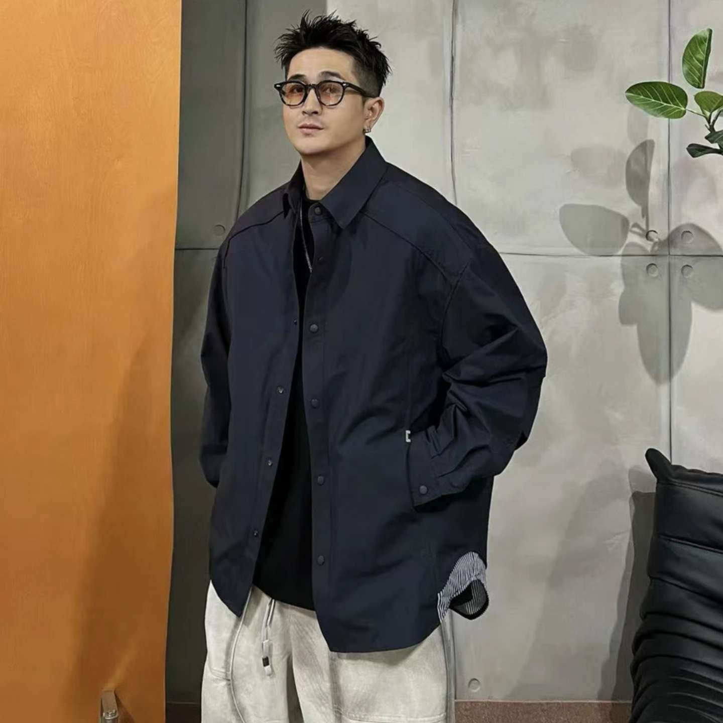 5cm 2025春秋季 FIVECM时尚 男款 宽松休闲上衣 潮流翻领牛仔衬衫