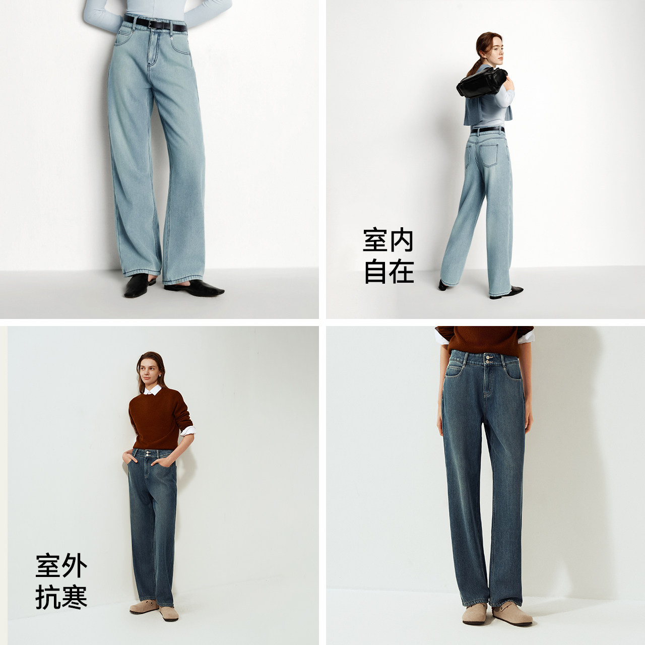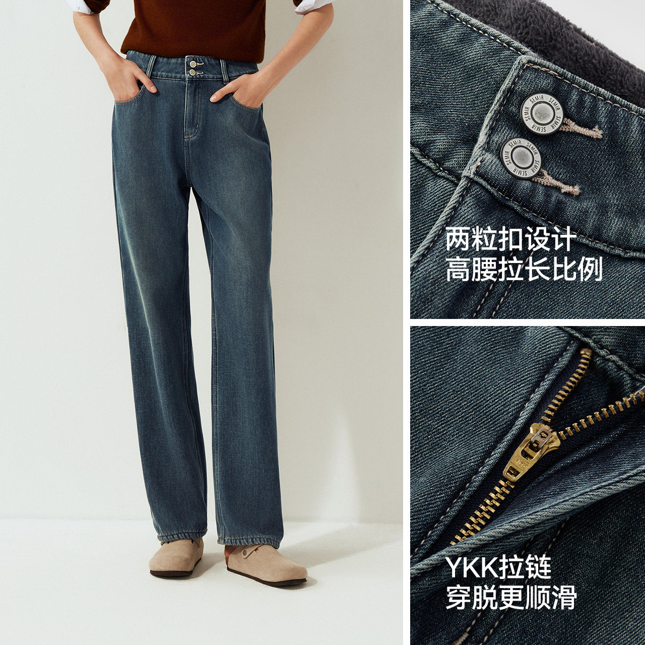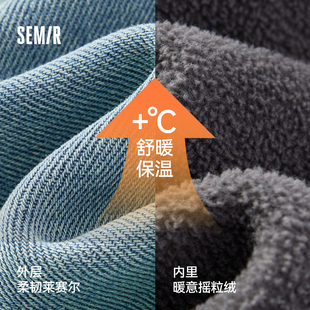 酷飒风拖地裤 森柔 高腰2025新款 女冬摇粒绒保暖直筒裤 森马牛仔裤