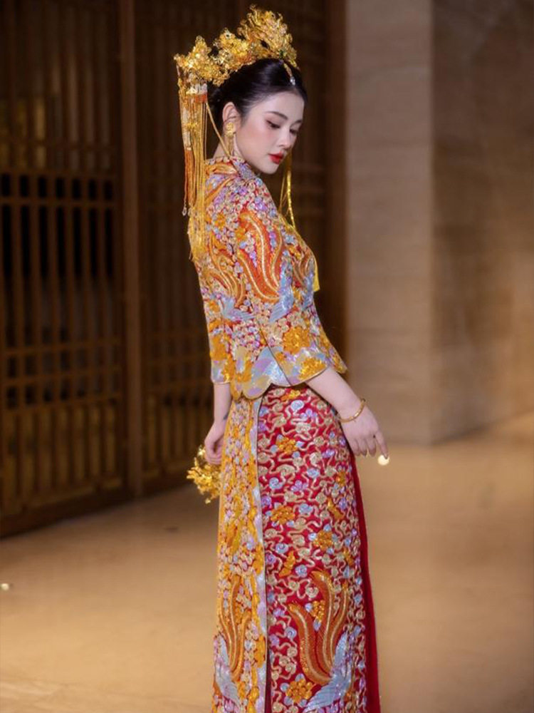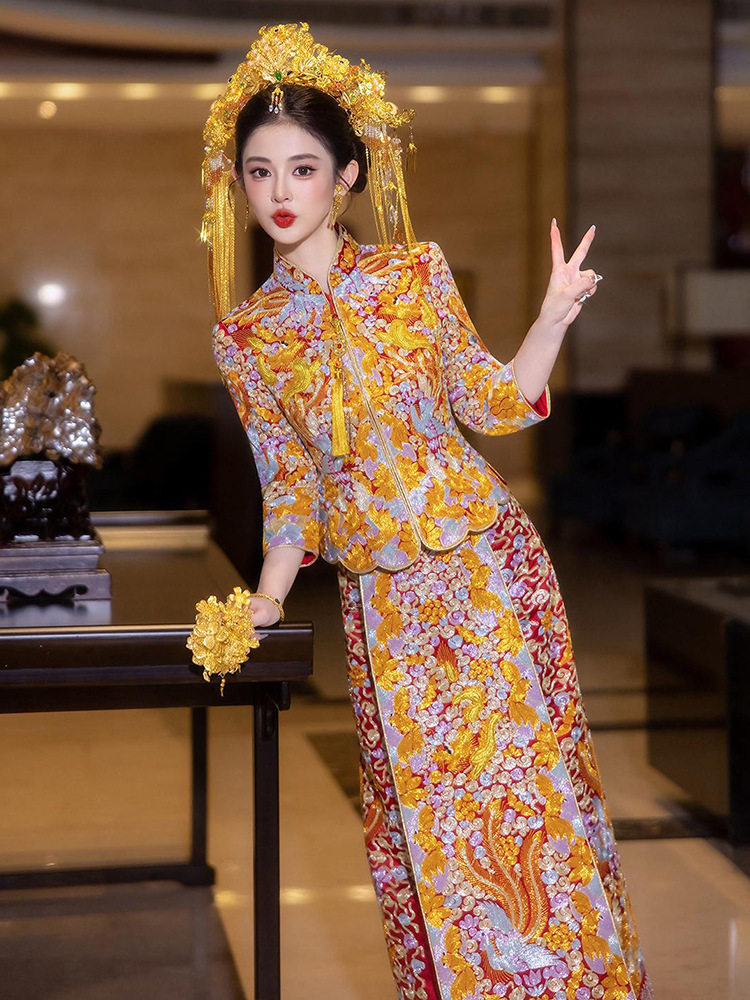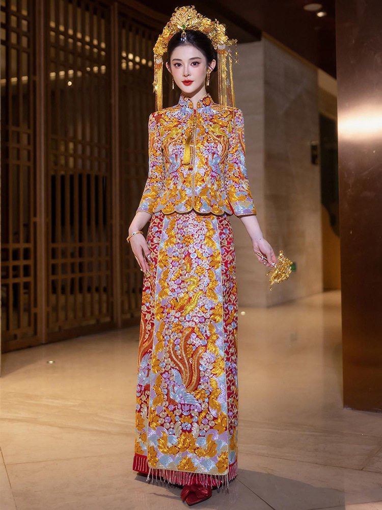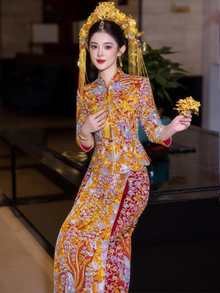 裙 嫁衣重工修身 盘金大五福龙凤褂2025新款 秀禾服新娘结婚褂皇中式