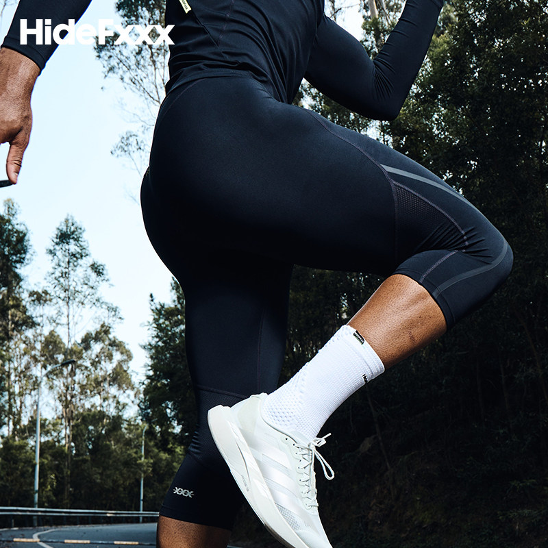 hidefxxx凝态液态氨纶压缩运动专业速干裤 高弹透气跑步健身男款