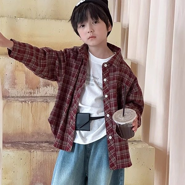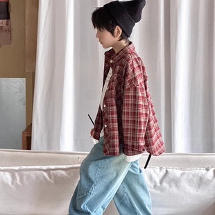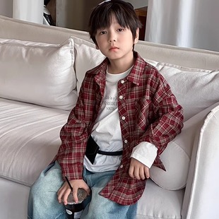中大童长袖 春秋款 上衣百搭男童休闲格子衬衣外套 韩版 儿童格子衬衫