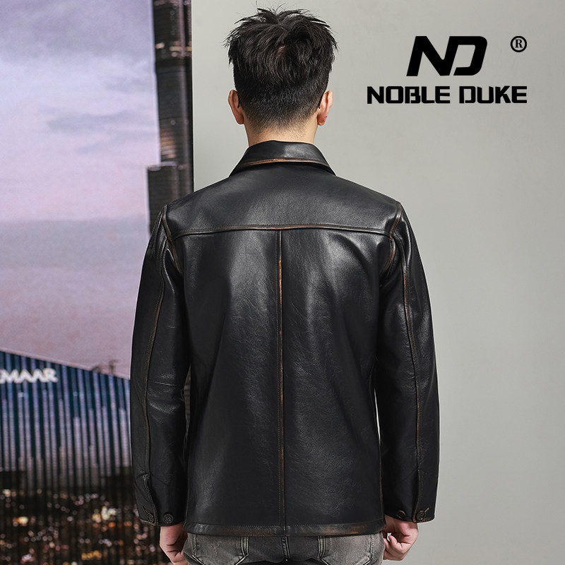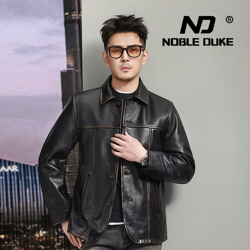 男装 真皮皮衣冬季 夹克春秋韩版 外套加绒加厚翻领爸爸装 中老年男士
