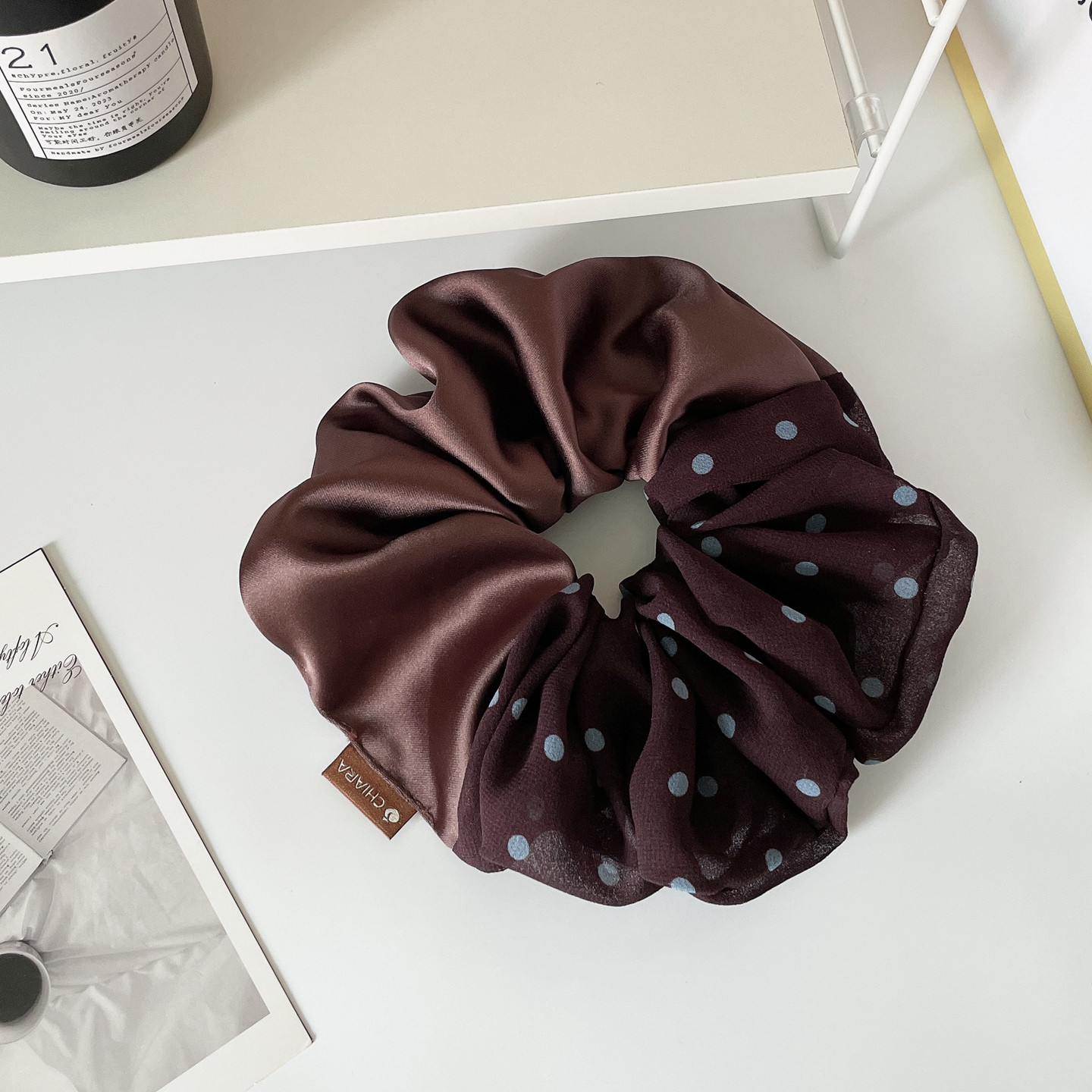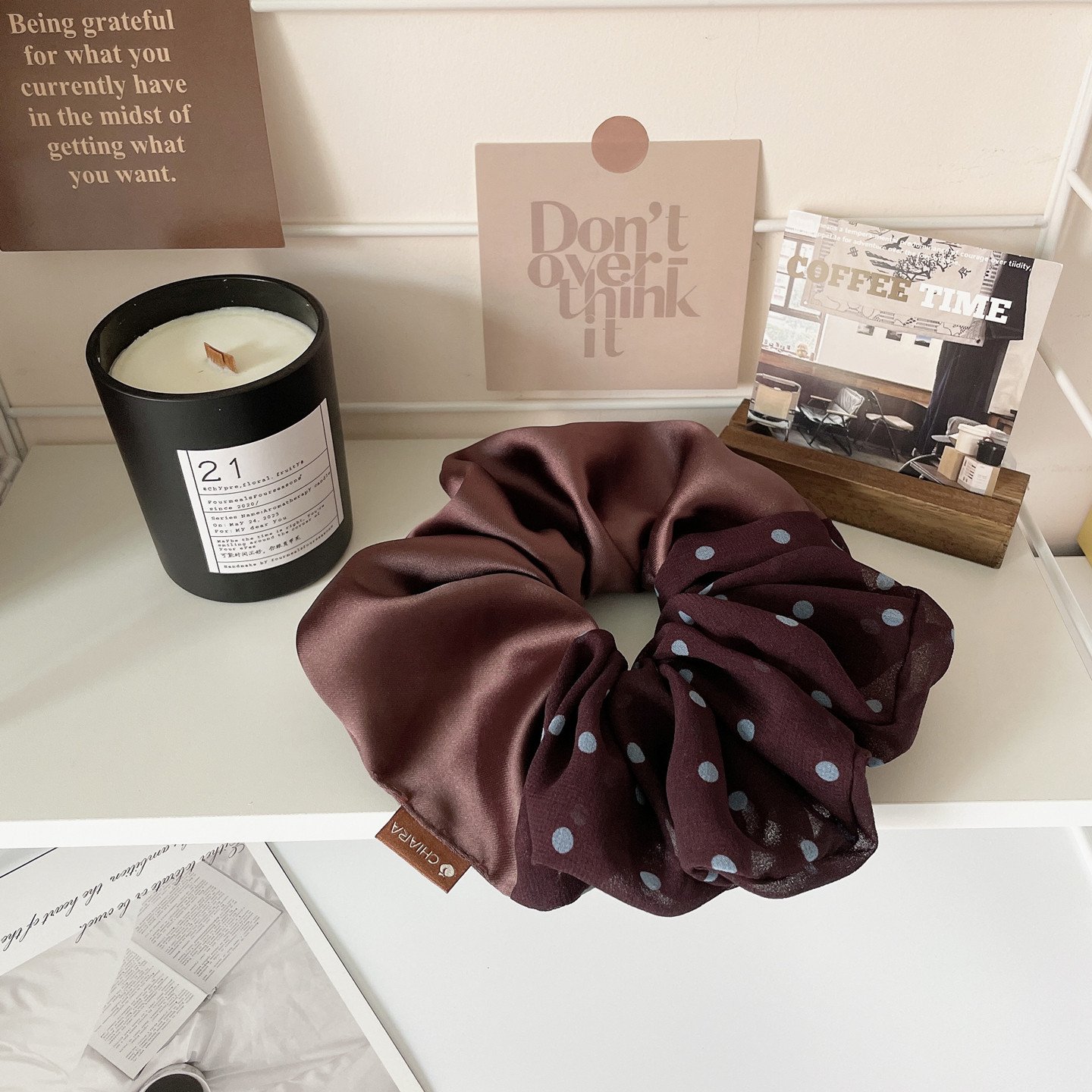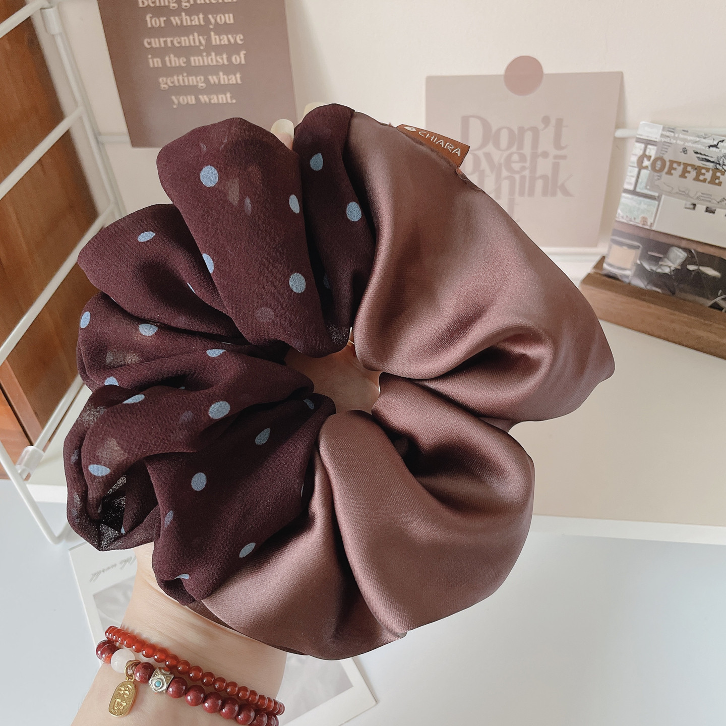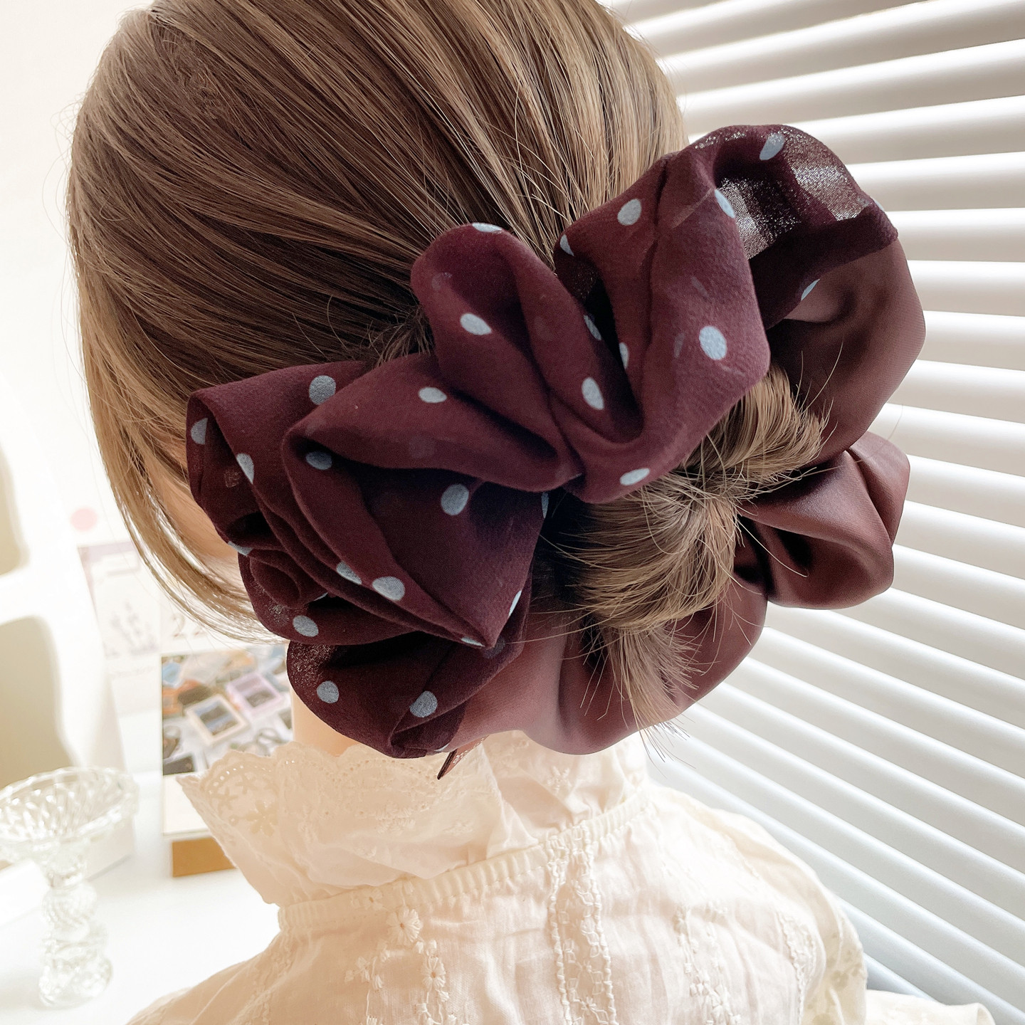法式 浪漫复古超大肠圈女棕色波点发圈chic发饰盘发绳丸子头花皮筋