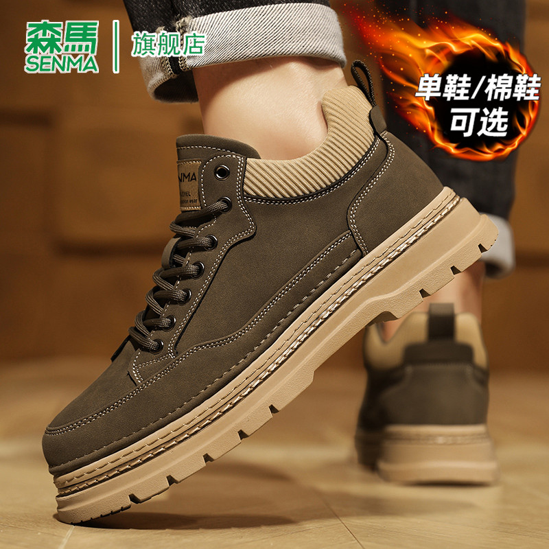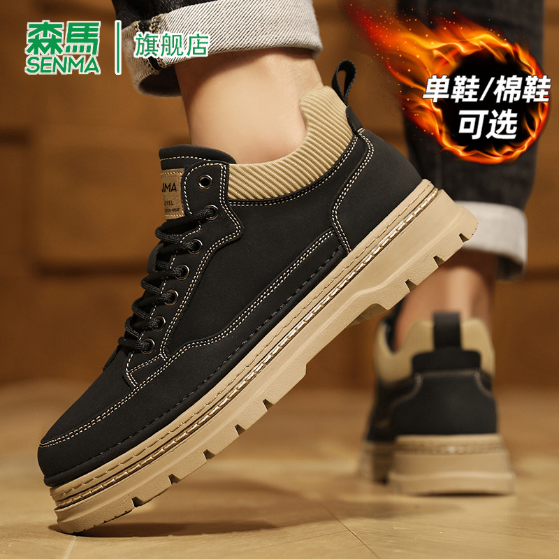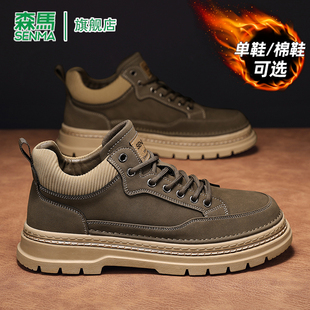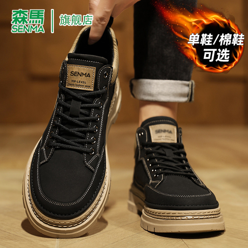休闲皮鞋 森马男鞋 加绒加厚工装 复古英伦风保暖马丁靴2025新款 冬季