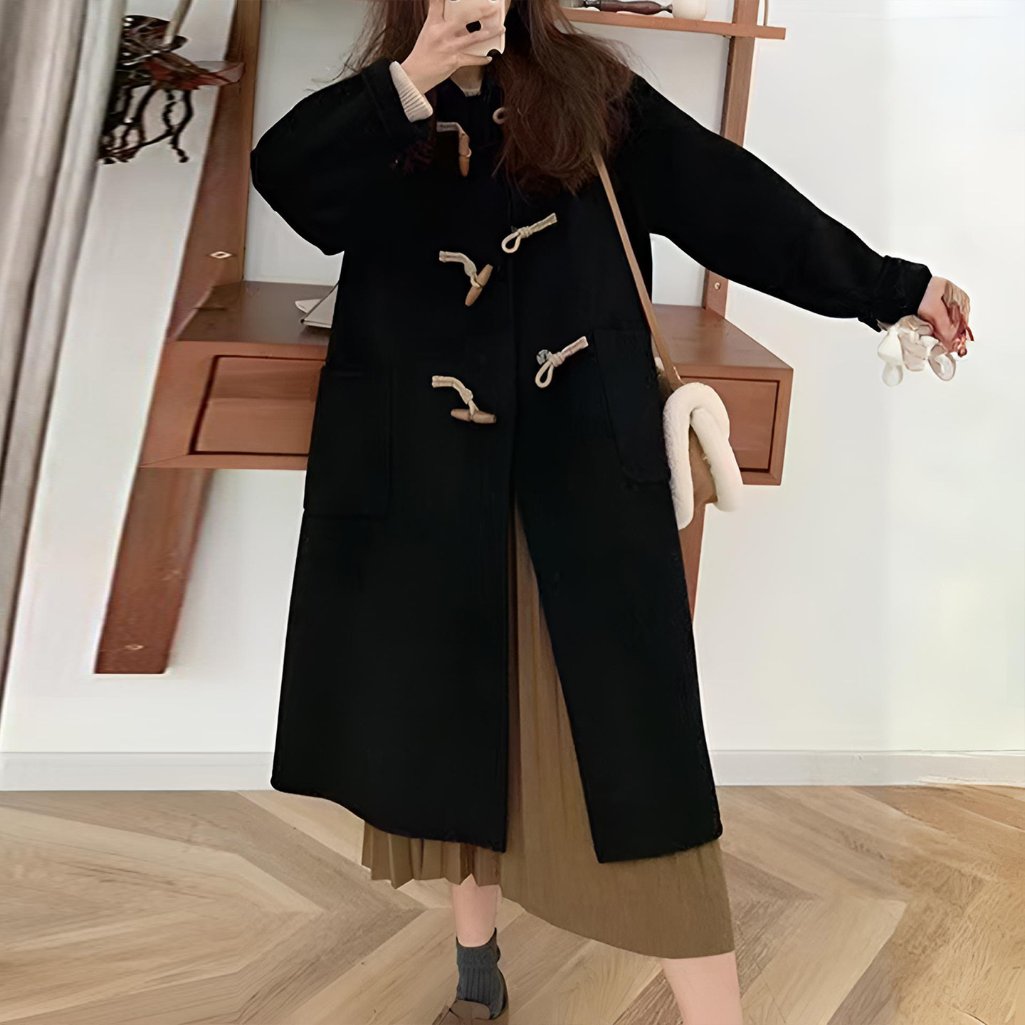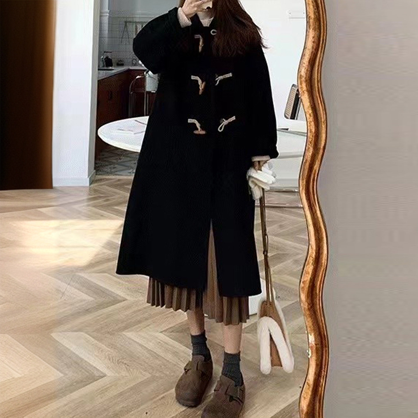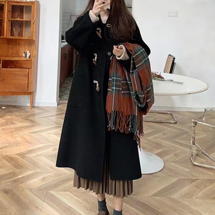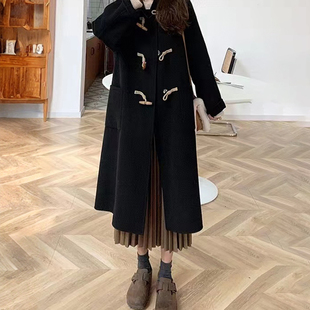 300斤特大码 黑色牛角扣设计毛呢外套女胖mm气质百搭过膝呢子大衣