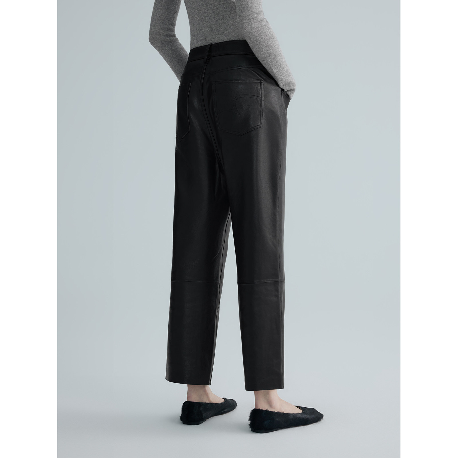 女休闲9分皮裤 A级小绵羊皮无涂层植鞣显瘦直筒裤 小腿精 华吉言