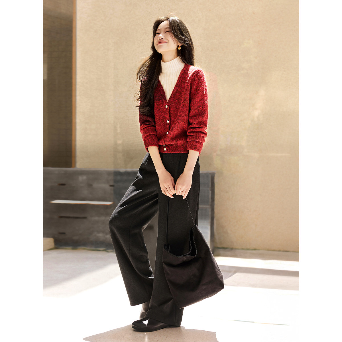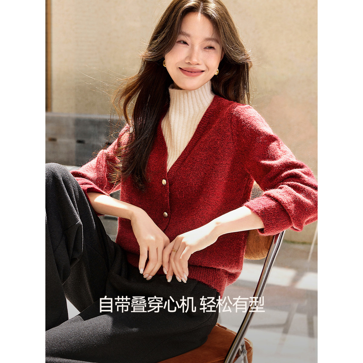 女纯羊绒毛衣针织打底衫 气质美学 100%纯山羊绒开衫 修身 秋冬 法式