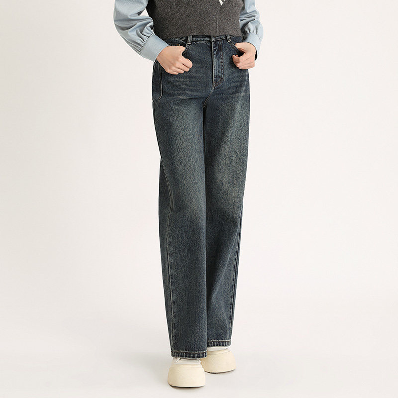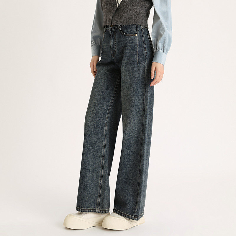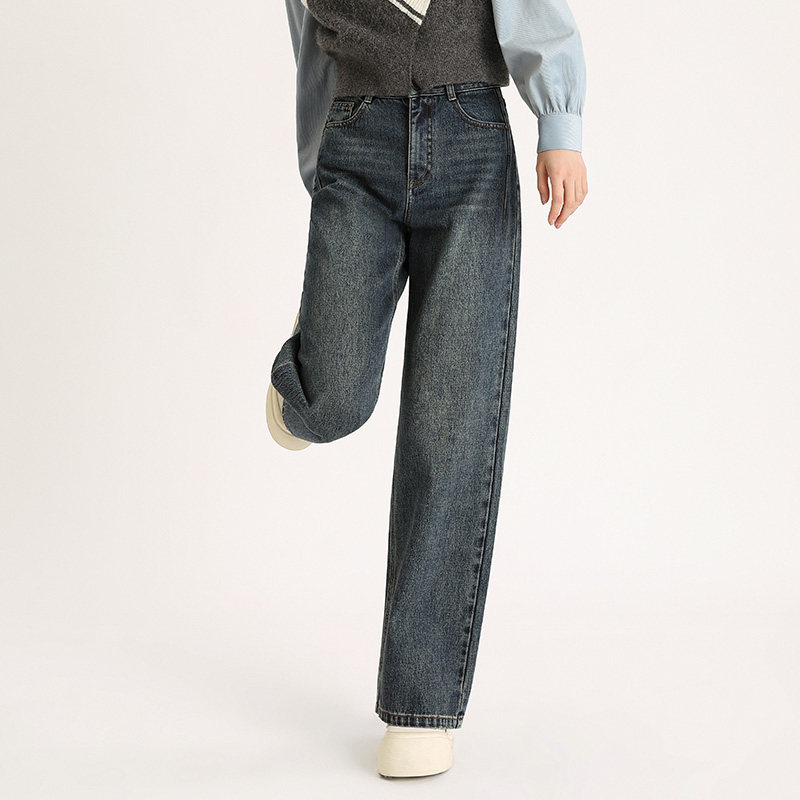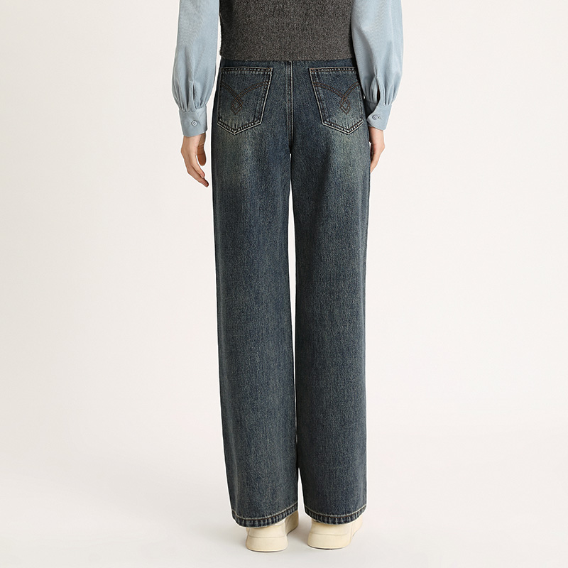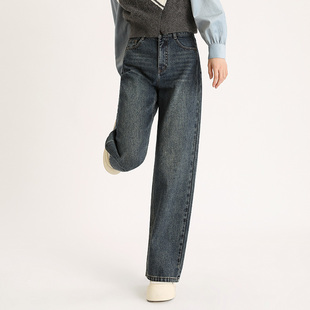 新款 2025秋季 百搭显瘦 女水洗复古休闲裤 PIT100%棉蓝色高腰牛仔裤