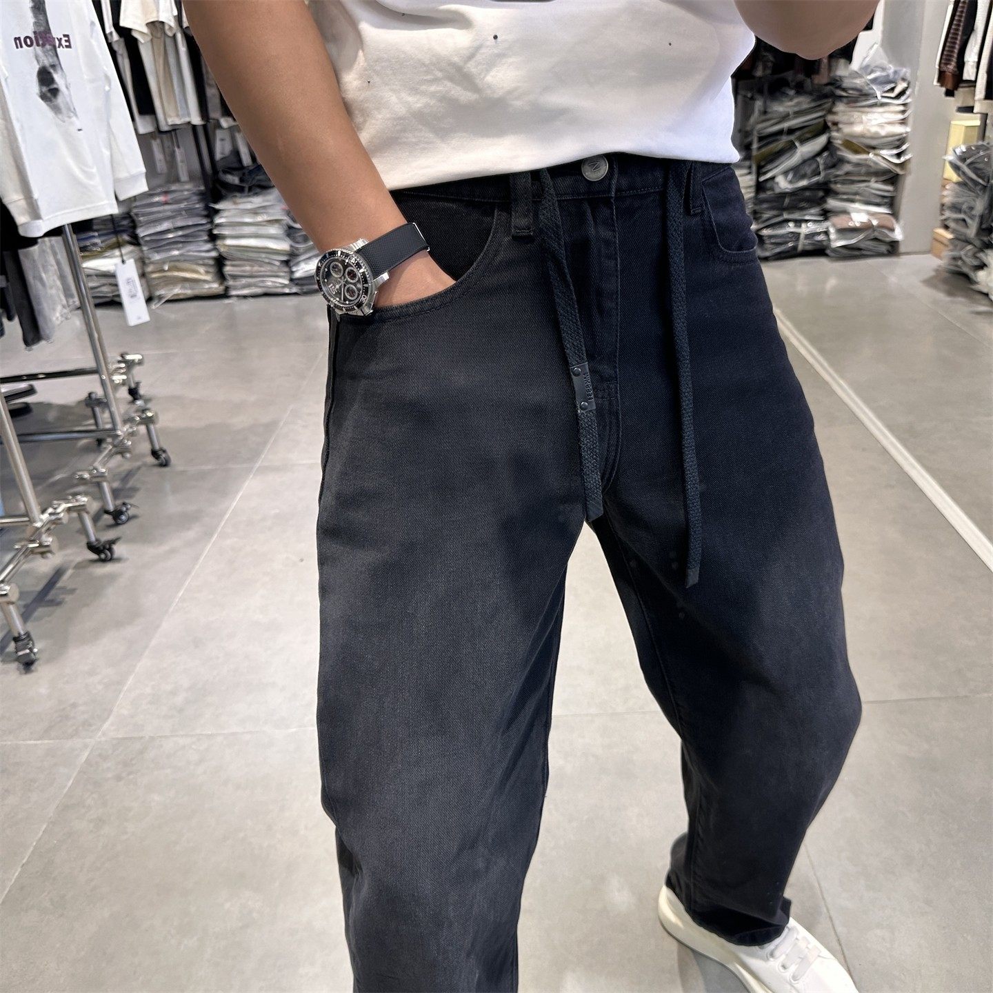 子女装 三福牛仔裤 复古领带腰绳宽松阔腿直筒裤 冬季 512988 2025新款