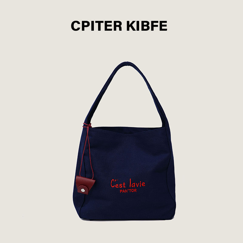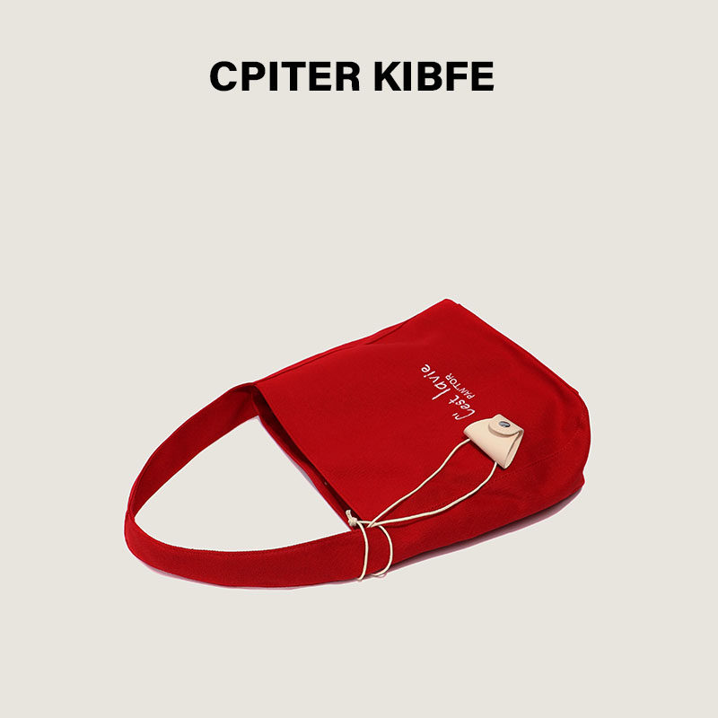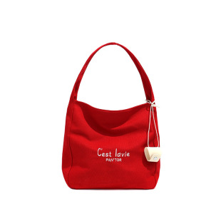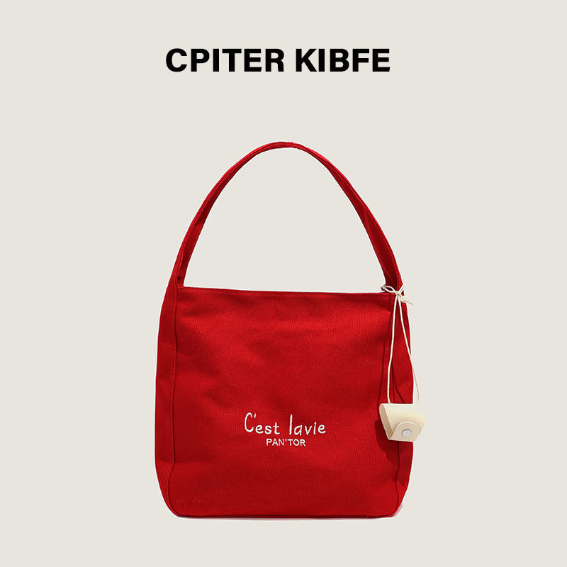 赵露思同款 百搭通勤单肩包 简约大容量红色帆布包托特包包女新款