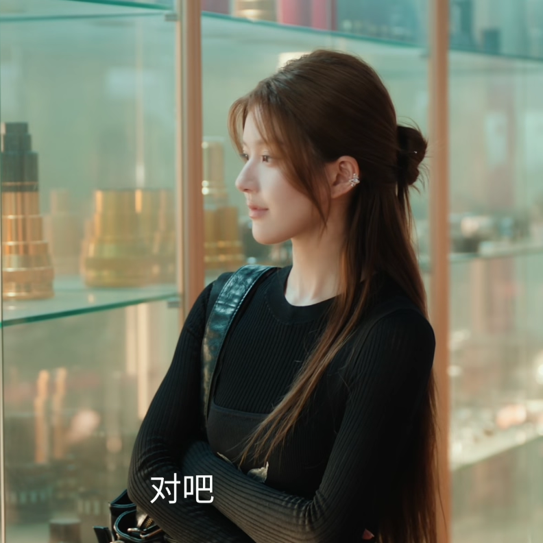 设计感 针织衫 许你耀眼赵露思许妍黑色花卉吊带背心2025秋修身 长袖