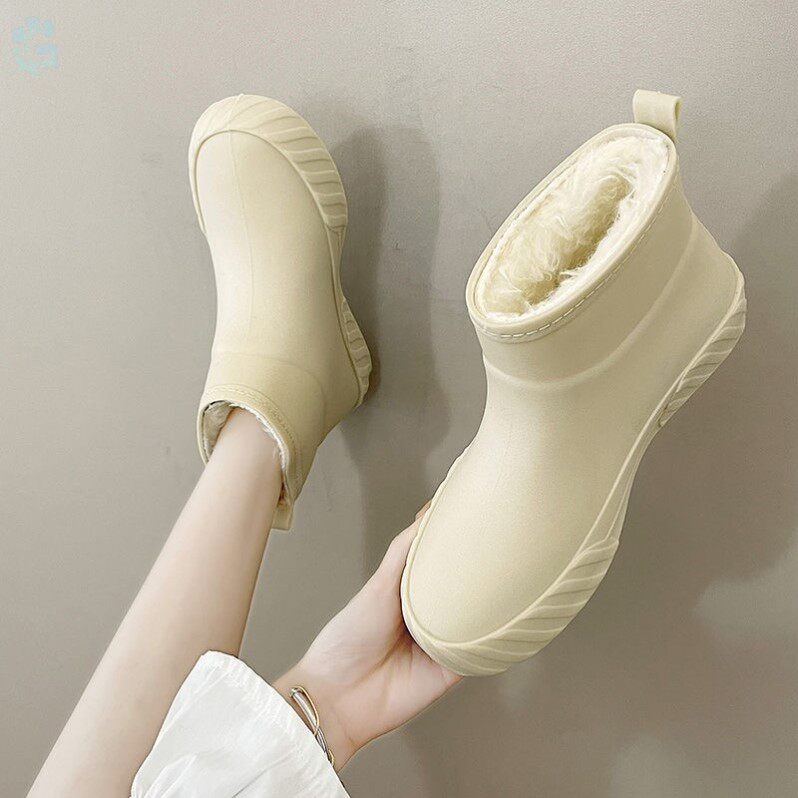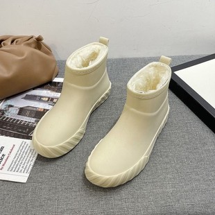 加绒加厚外穿中筒雨靴成人防滑厨房男女鞋 冬天加厚保暖雨鞋 防水鞋