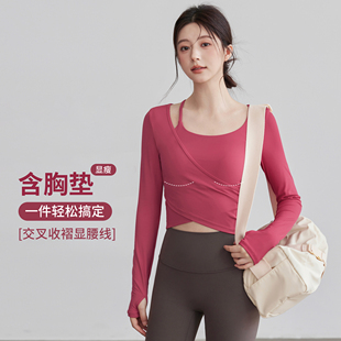 速干瑜伽服女修身 弹力运动上衣户外跑步显瘦健身普拉提内搭T恤秋