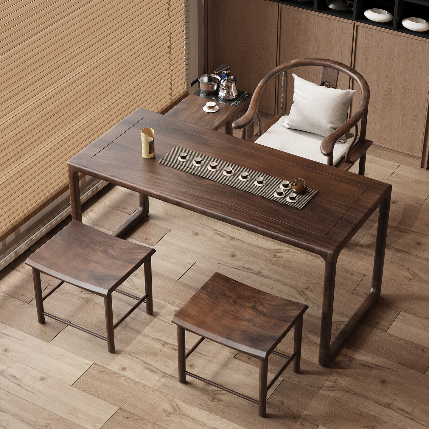 实木茶桌椅组合岛台客厅家用办公室大板泡茶台轻奢现代简约高级感