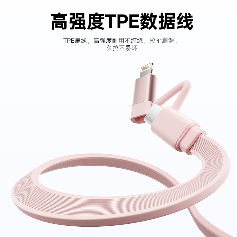 WOPOW沃品新款 滴胶小米华为苹果安卓荣耀通用iphone1617 二拖二伸缩数据线65W超级快充1米手机平板充电线原装