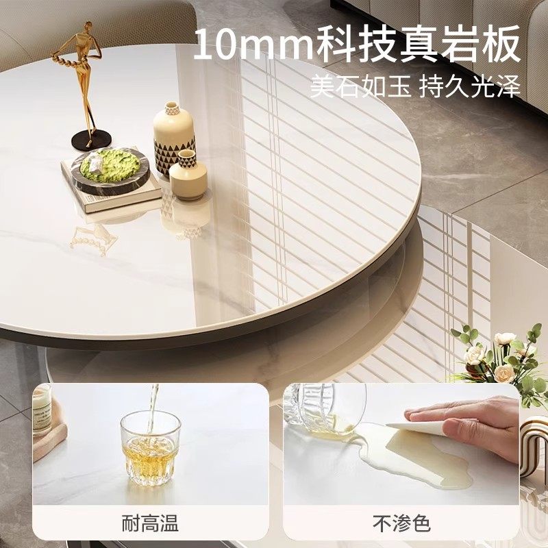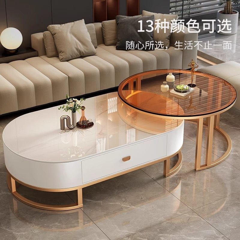 岩板茶几家用客厅椭圆形网红茶几2025新爆款 轻奢简约玻璃组合茶几