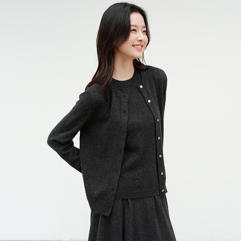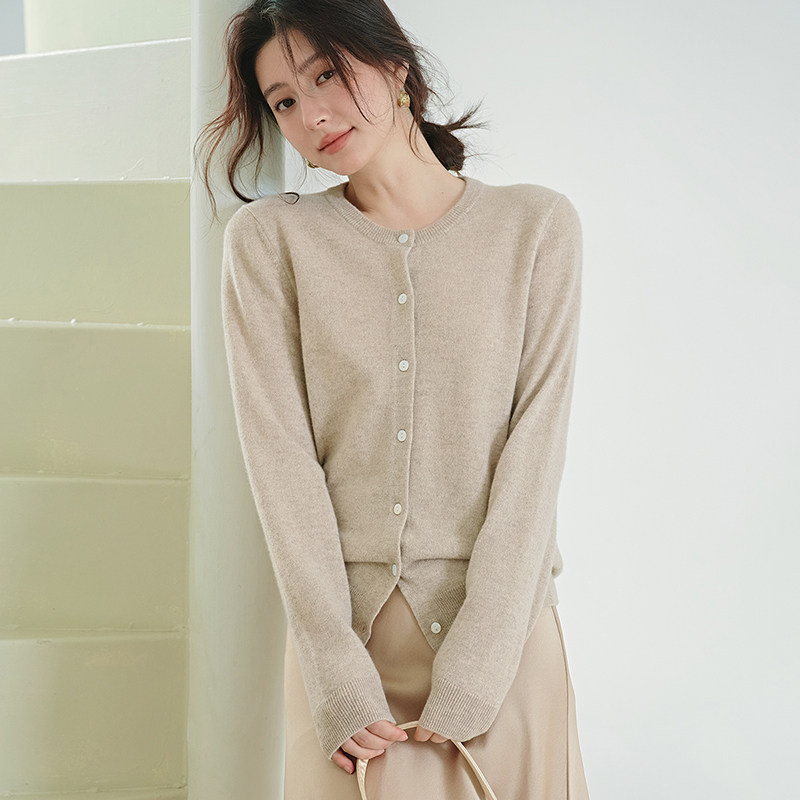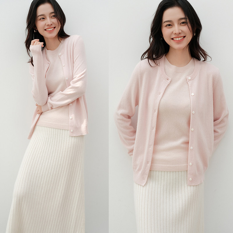思诺芙德圆领多色100%山羊绒针织开衫 显瘦通勤风毛衣 女25秋冬新款
