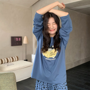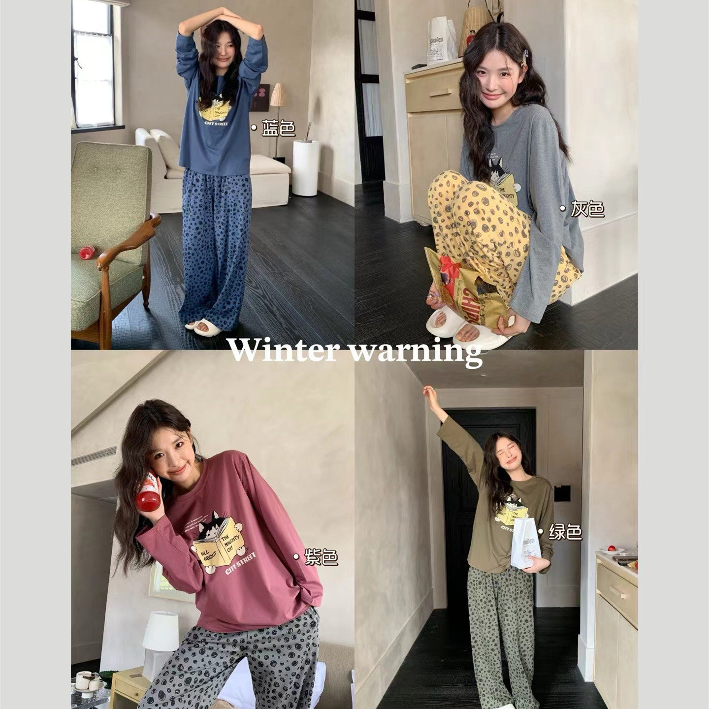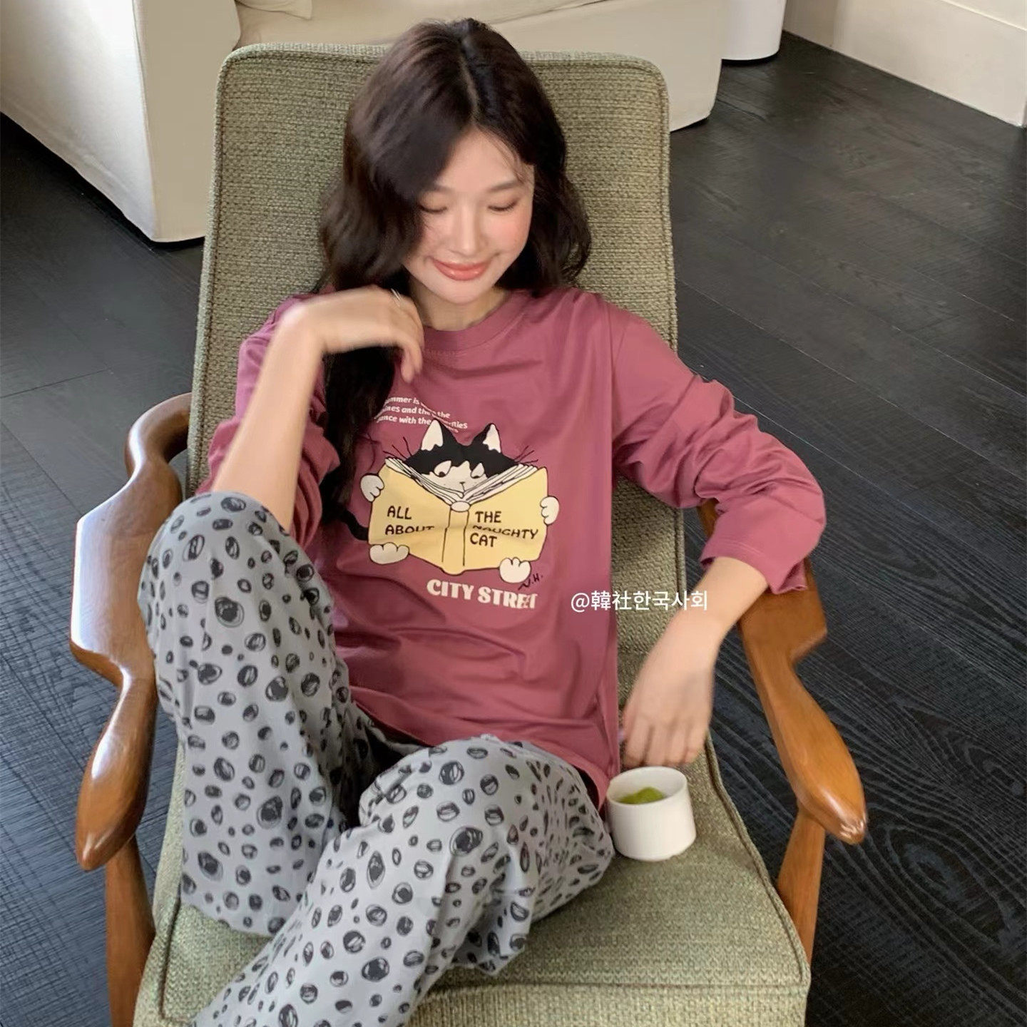 春秋冬韩社2532时髦宅家猫咪纯棉家居服少女长袖 慵懒舒适睡衣 长裤