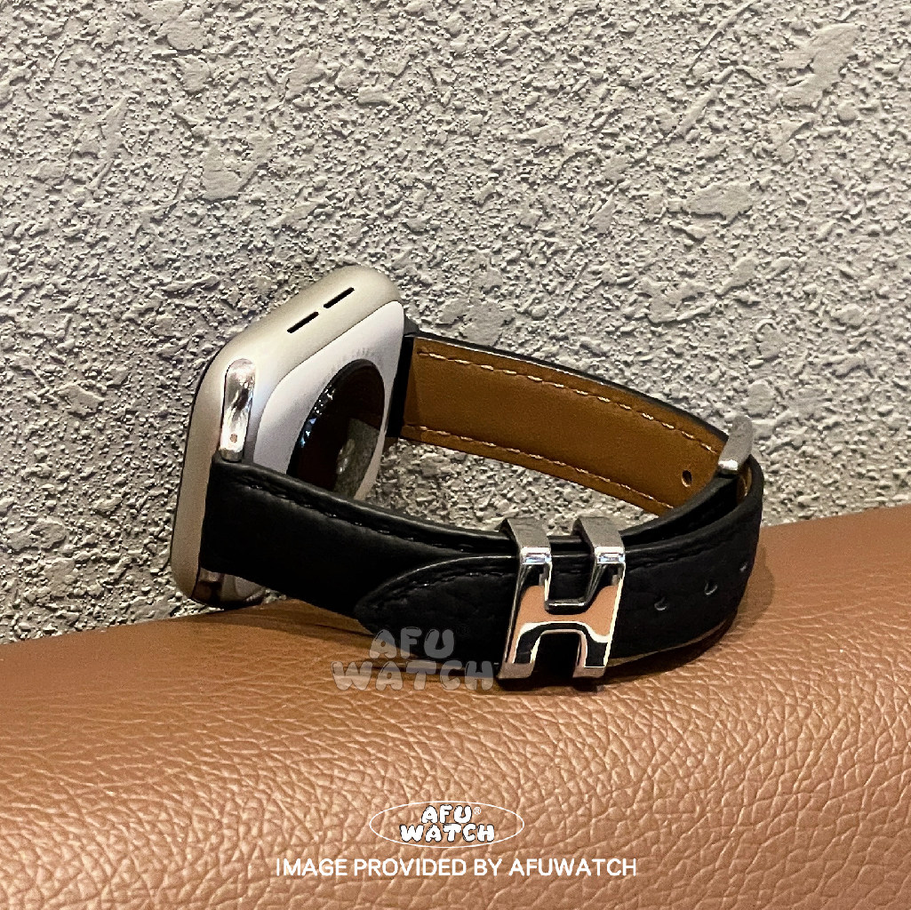 适用于苹果表带iwatchS11秋冬10皮质金属se百搭简约 H扣荔枝纹