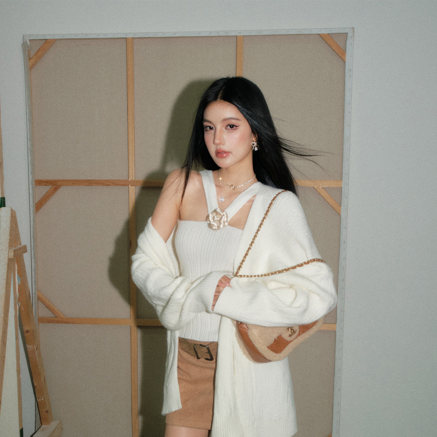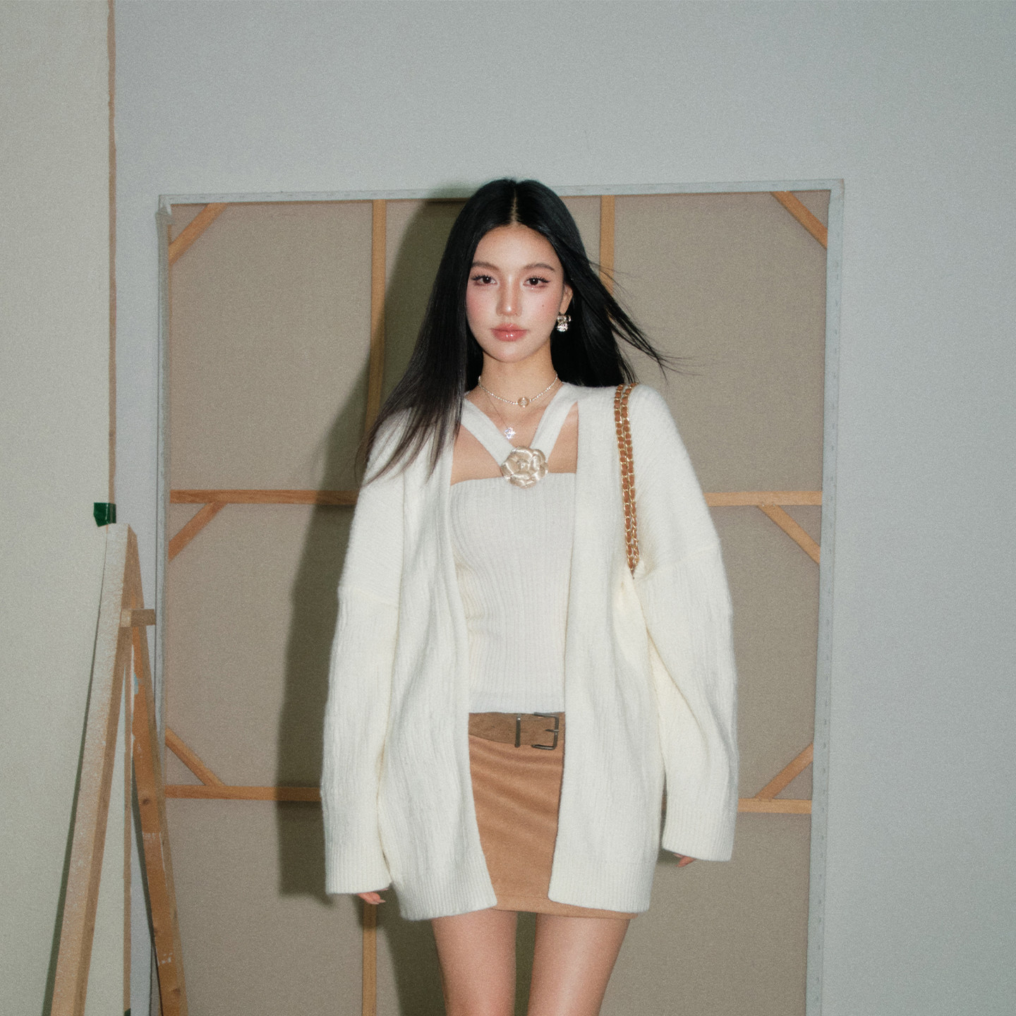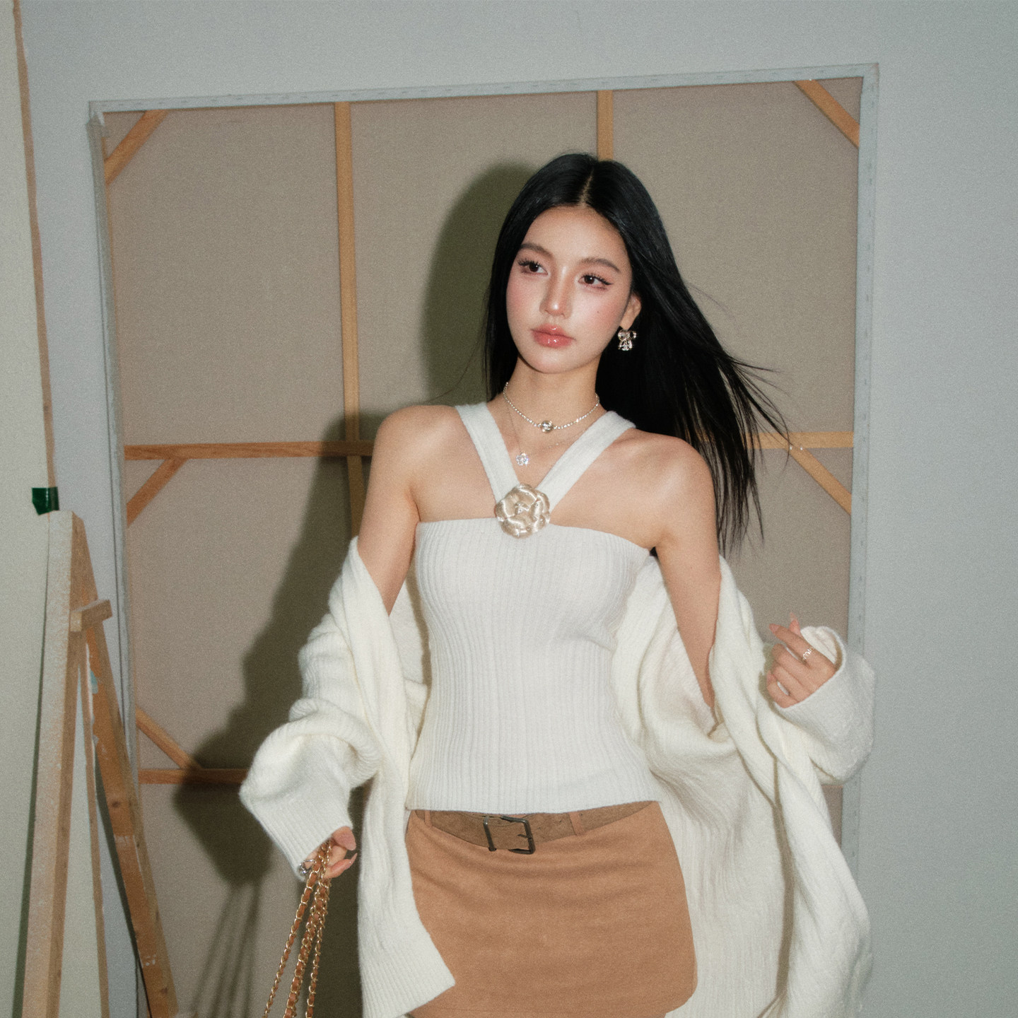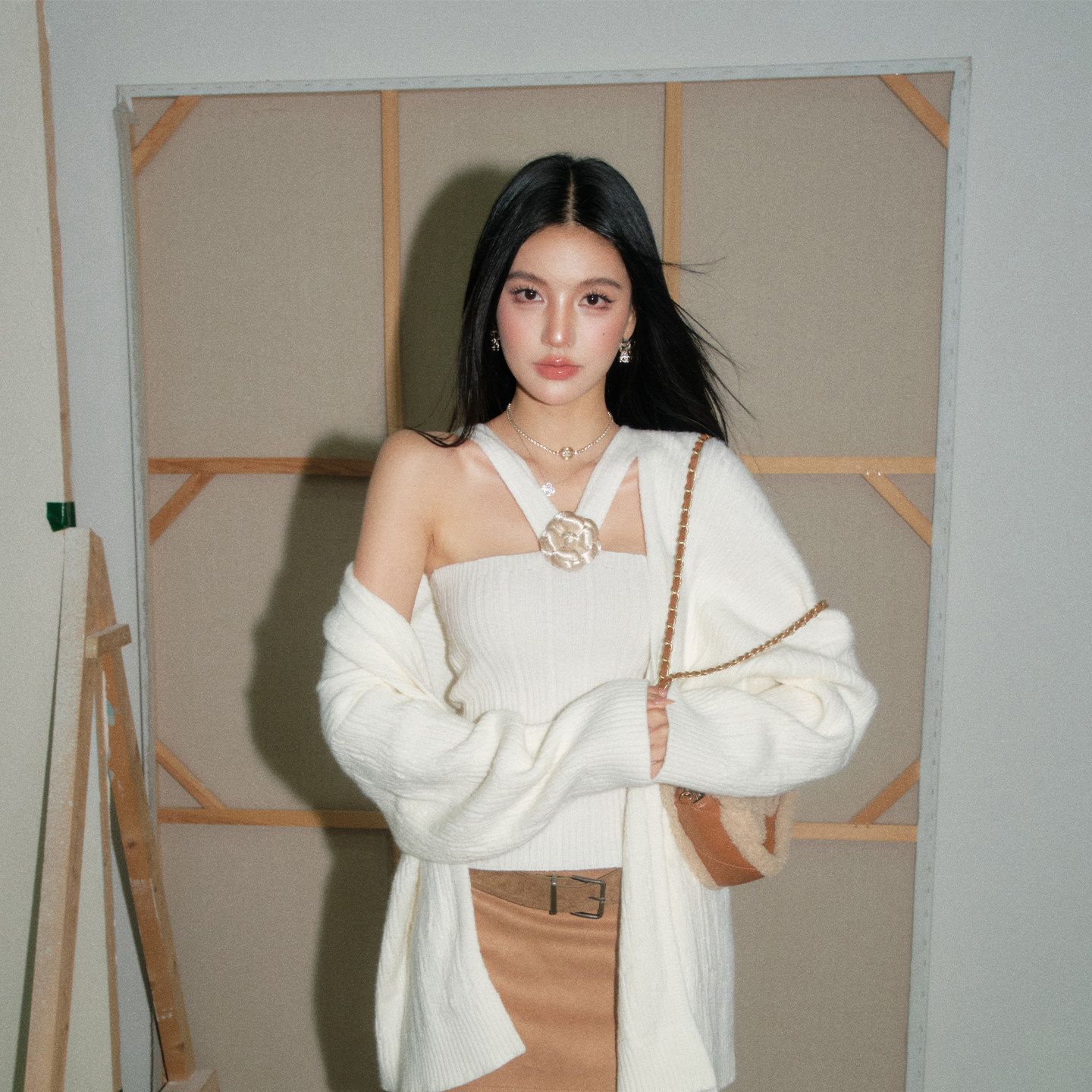 DUO韩系温柔气质纯欲挂脖显瘦百搭针织开衫 OLIVIA 两件套 现货