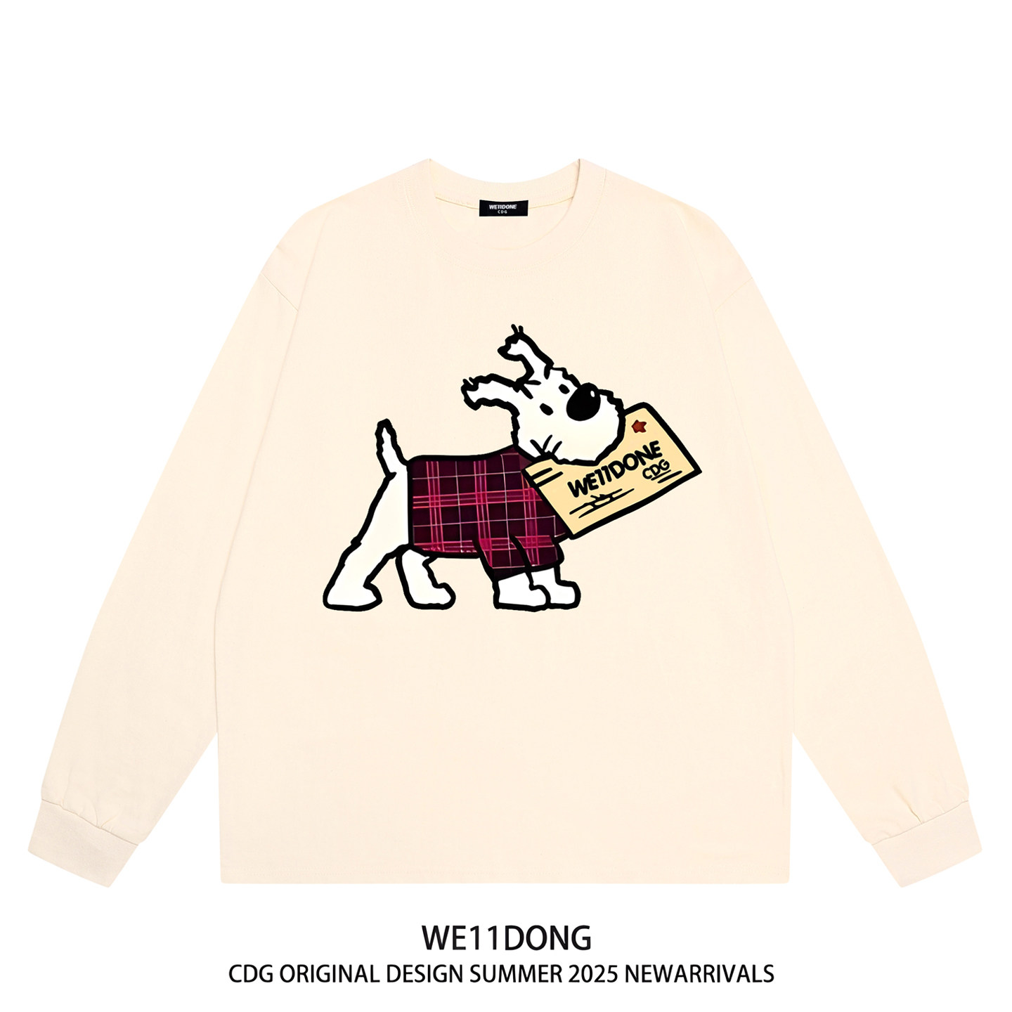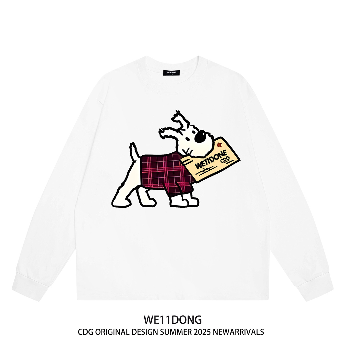 秋 t恤打底衫 WE11DONE CDG小众潮牌小狗印花男女重磅宽松纯棉长袖