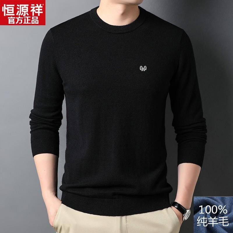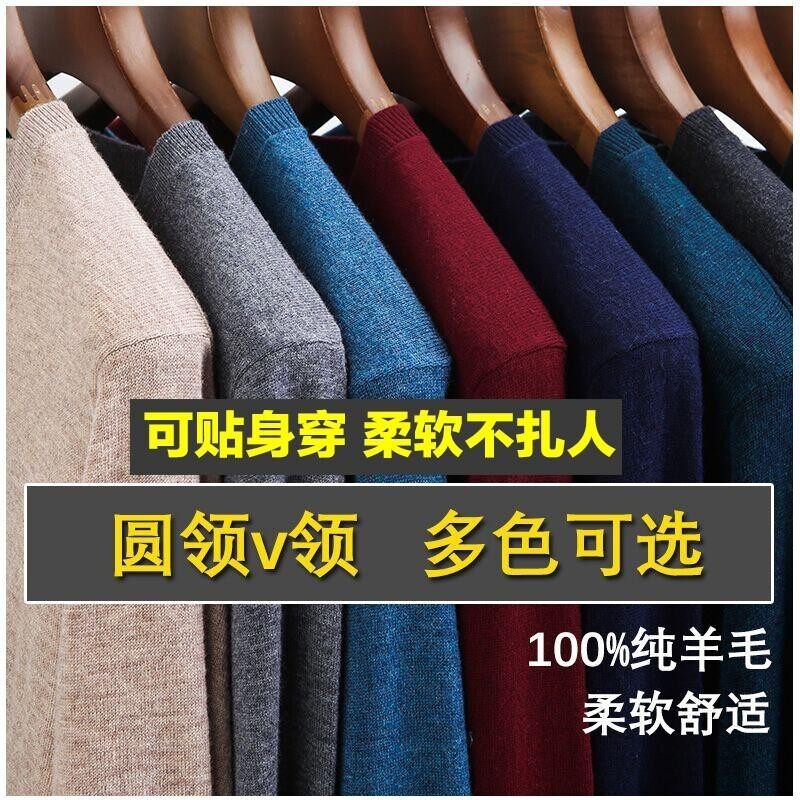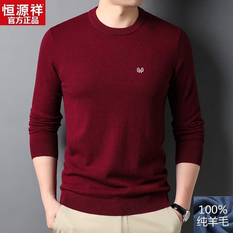 针织打底衫 薄款 圆领纯色中年男毛衣 男100%纯羊毛秋季 恒源祥羊毛衫