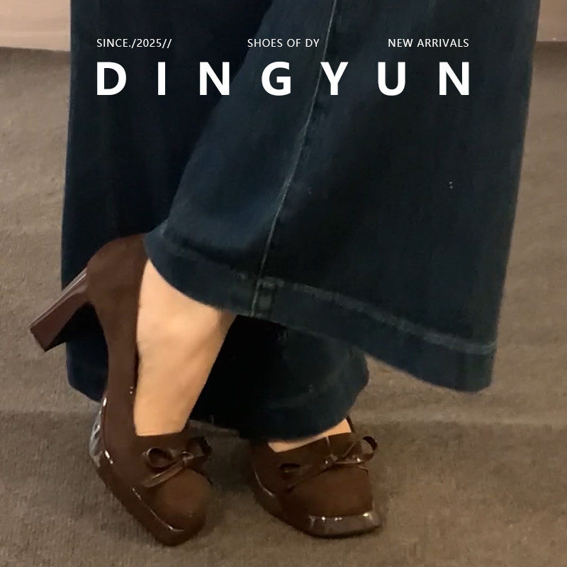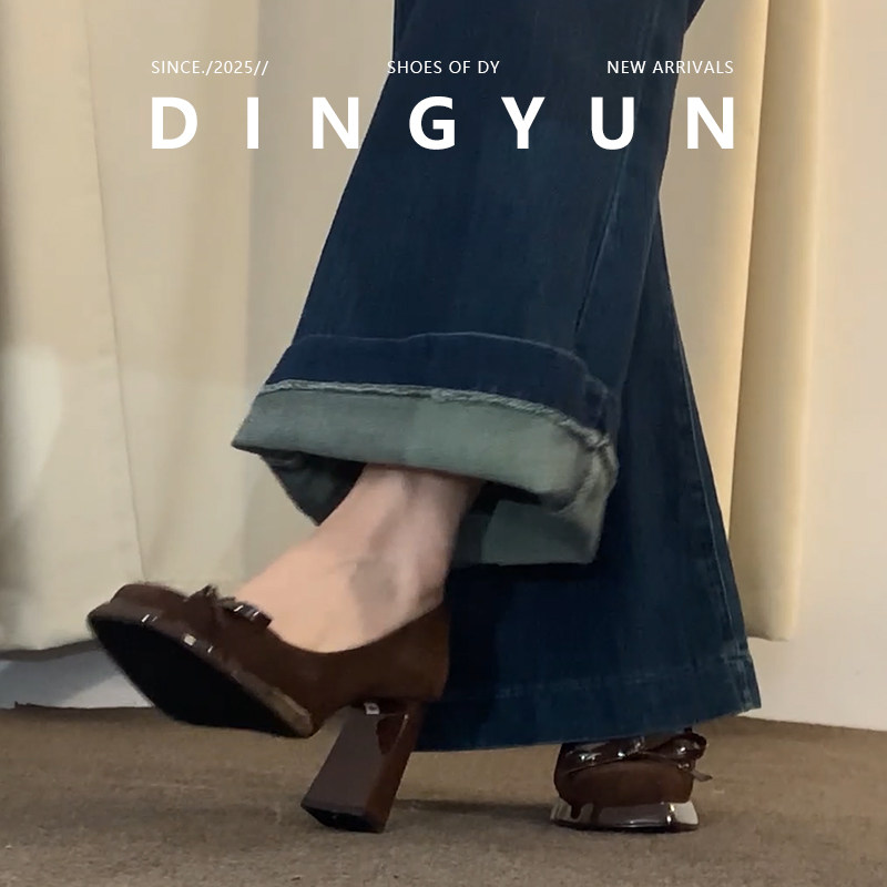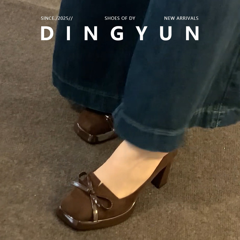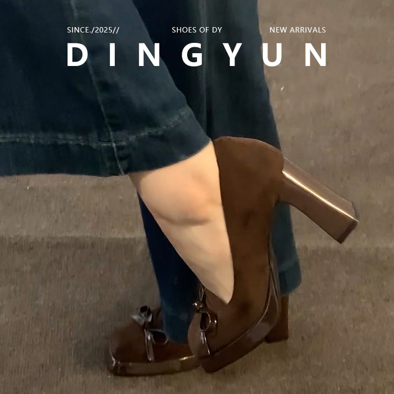 女鞋 羊皮版 小个子法式 方头粗跟单鞋 增高 dingyun丁允防水台高跟鞋
