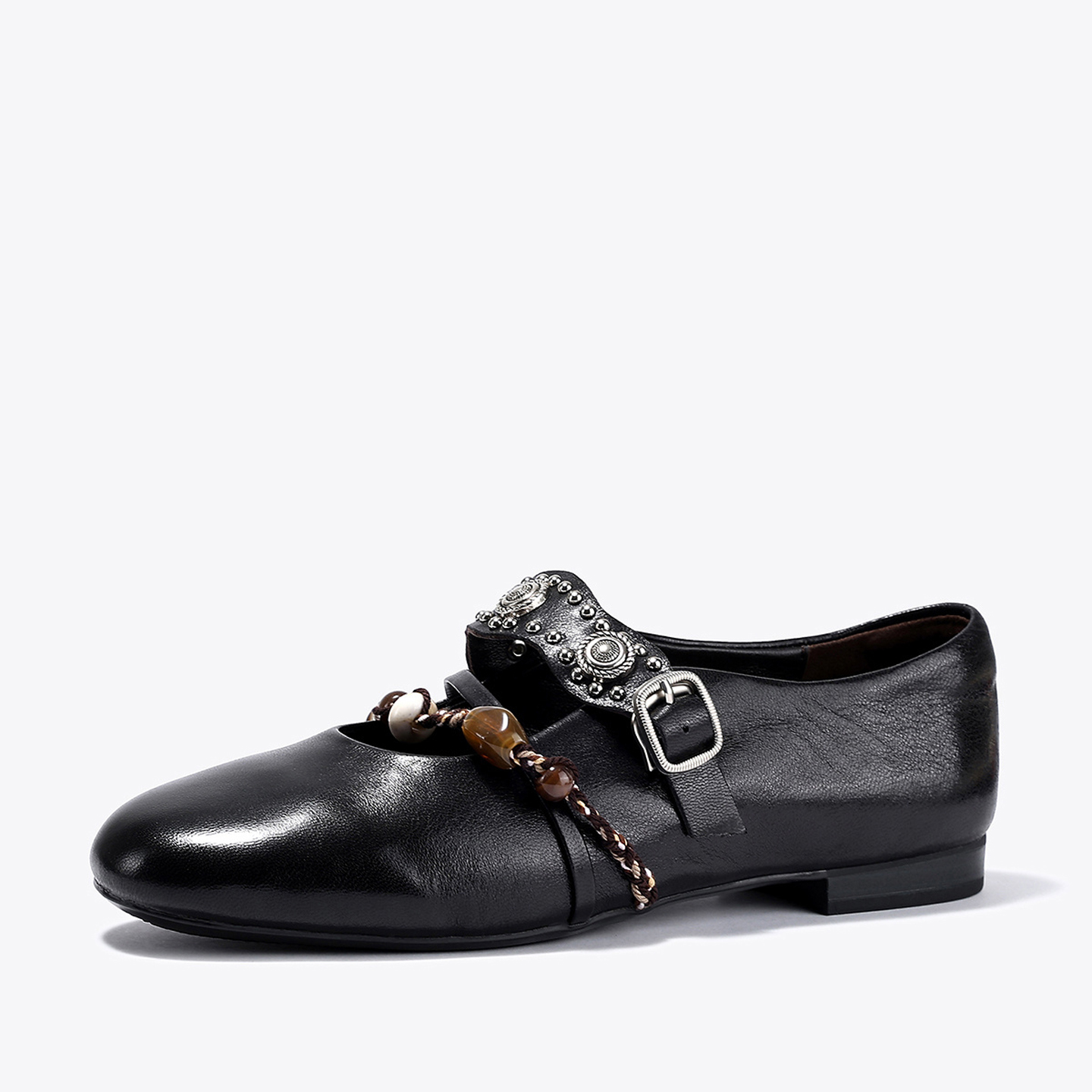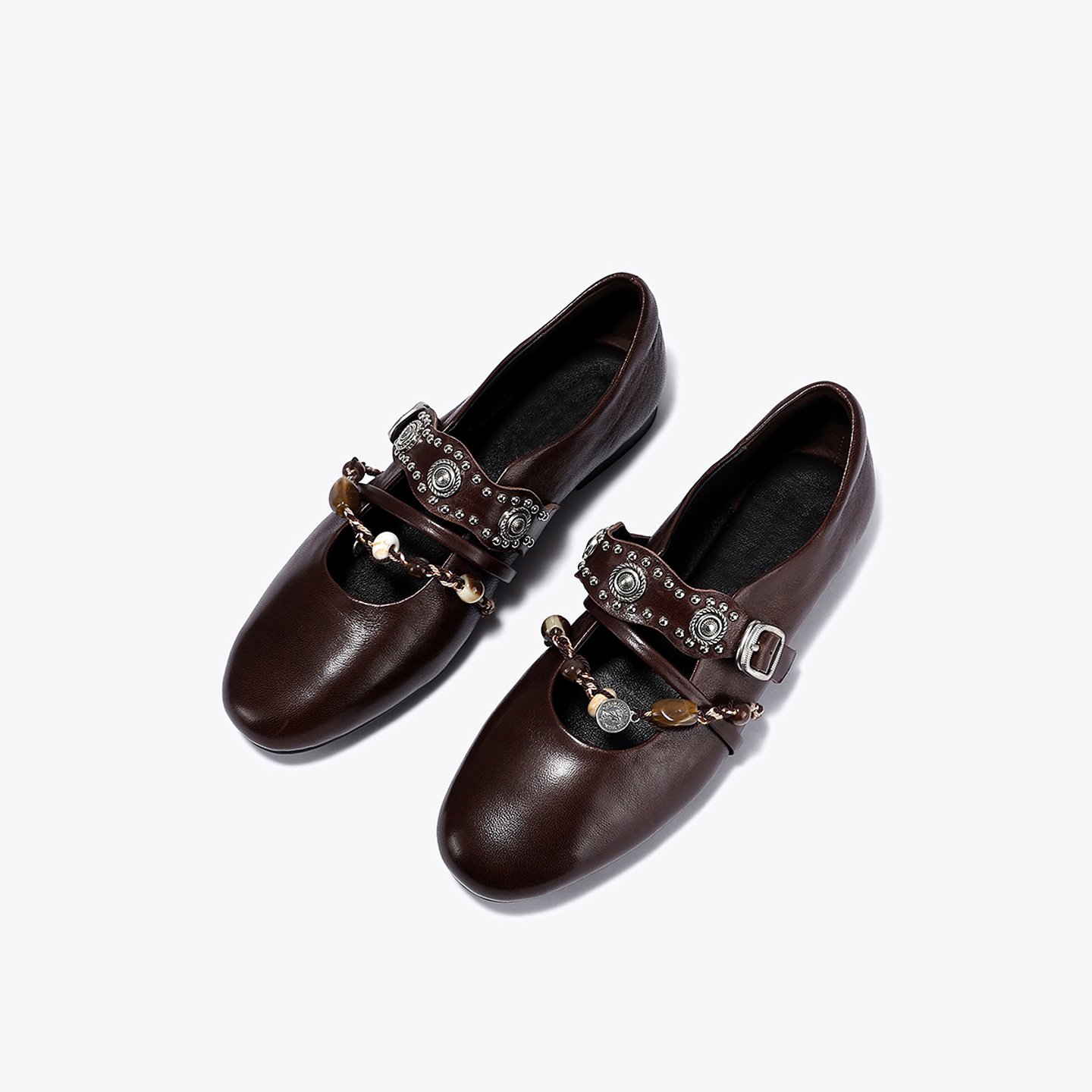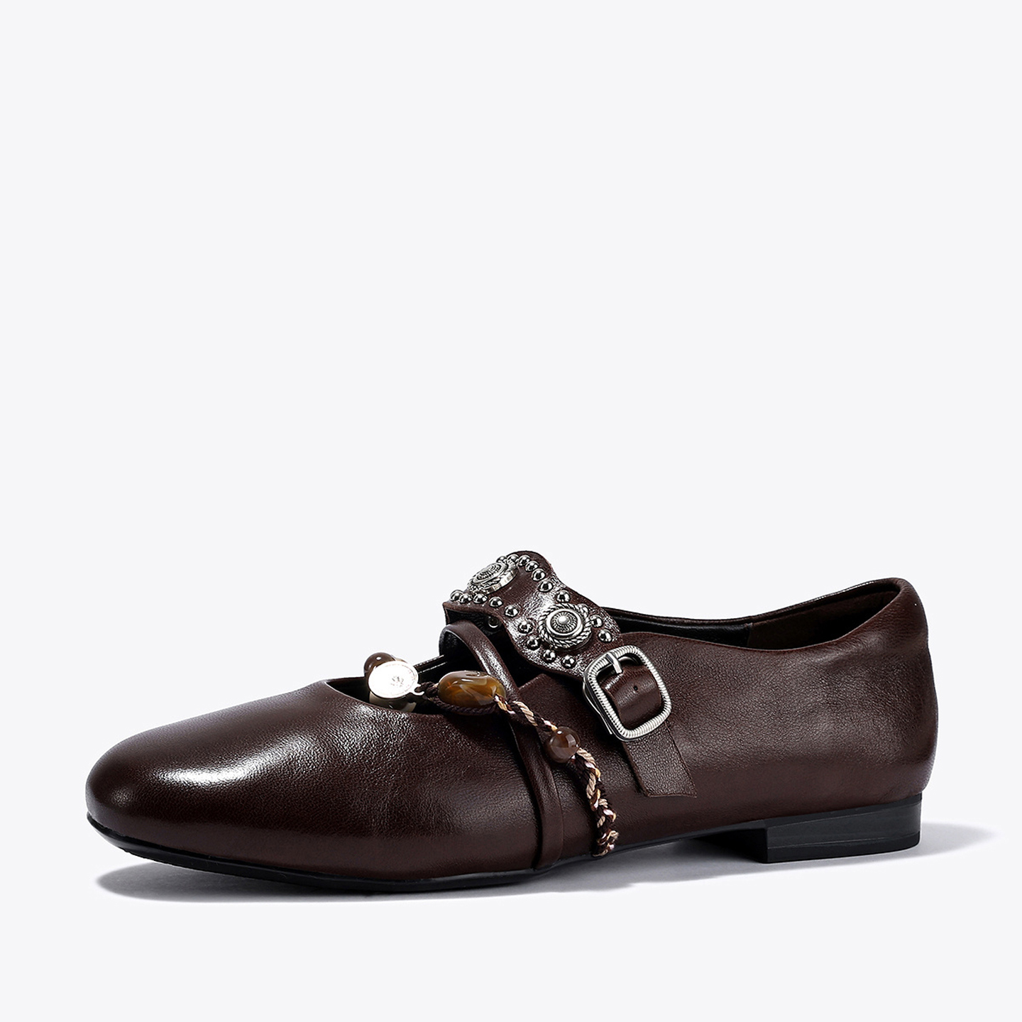 女 羊皮芭蕾玛丽珍单鞋 董洁董璇小酒窝同款 真美诗摩卡慕斯25秋新款
