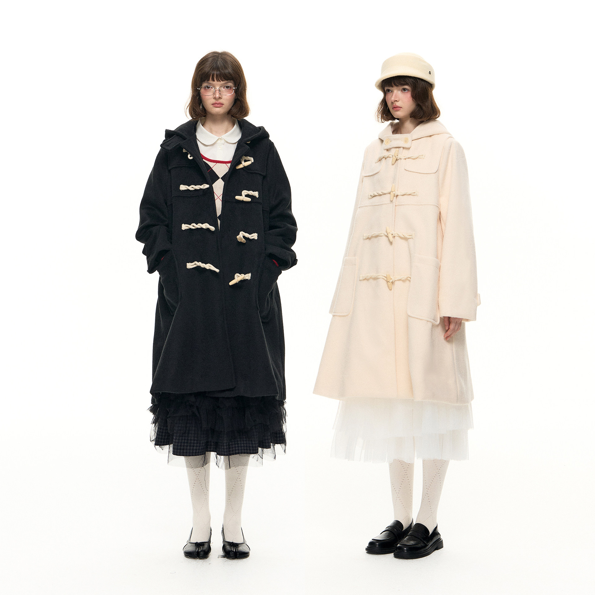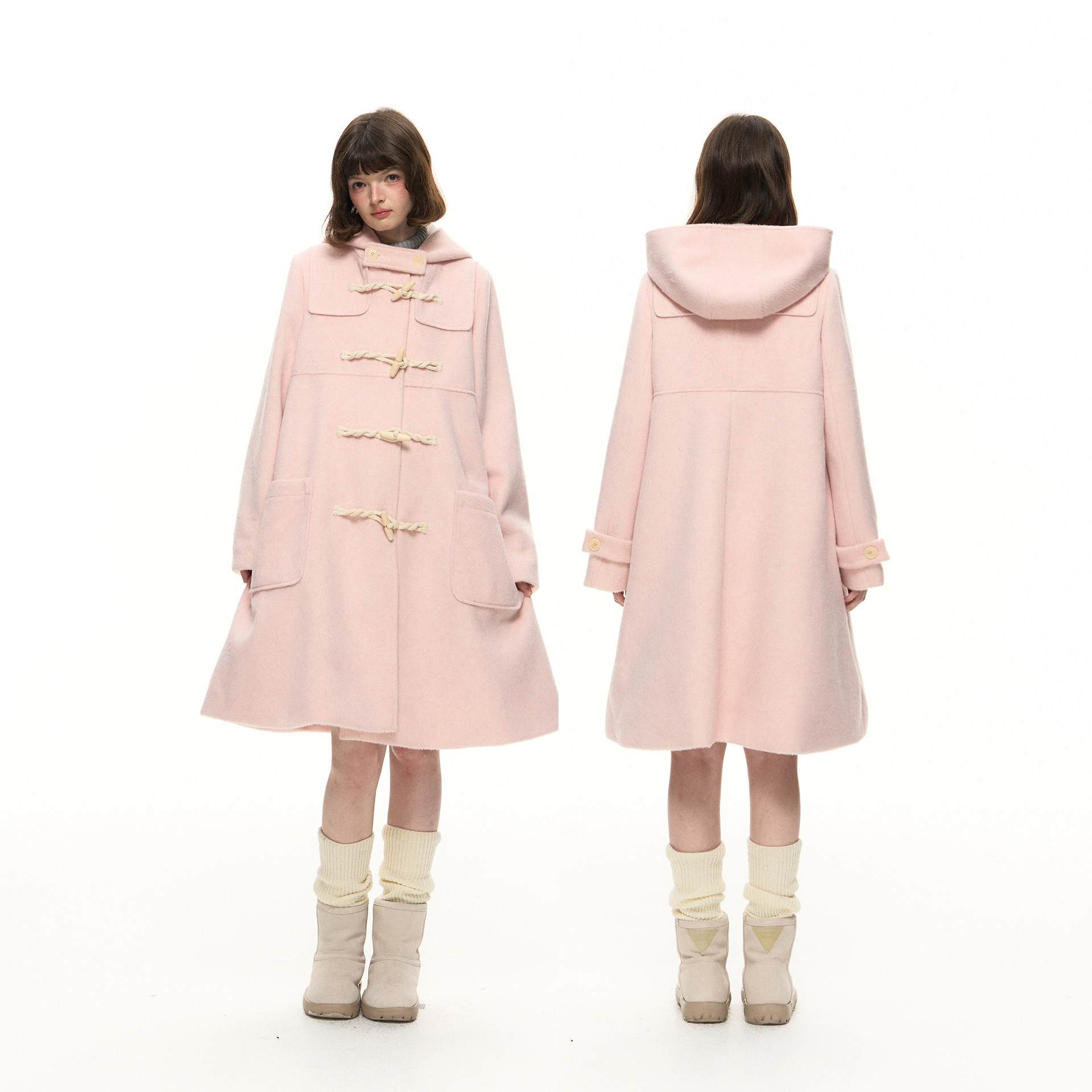 羊毛呢子外套 A字大摆牛角扣大衣学院风宽松中长款 Romance Nanci