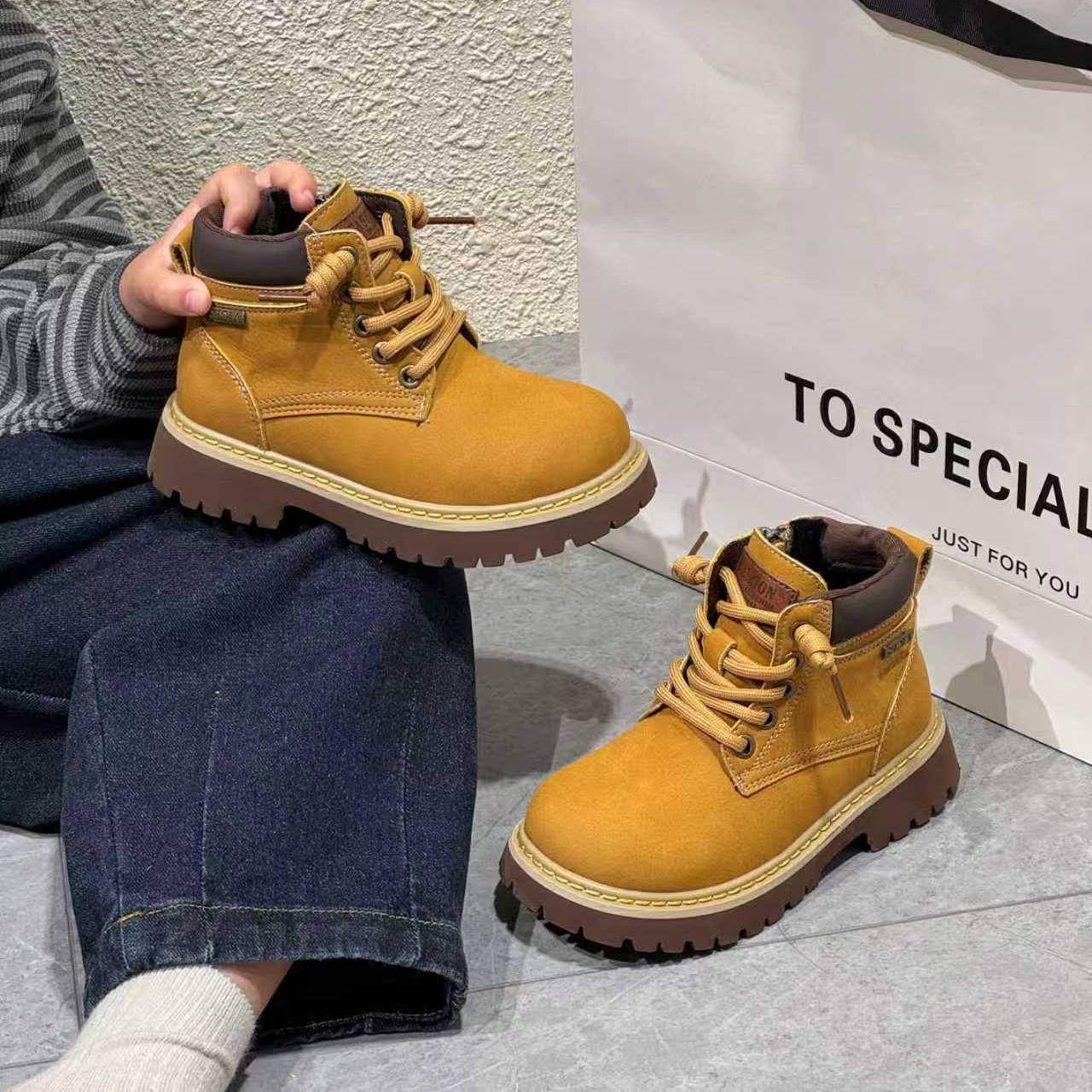 儿童小黄靴2025秋冬新款 低筒短靴单靴男童二棉靴子加绒女童马丁靴
