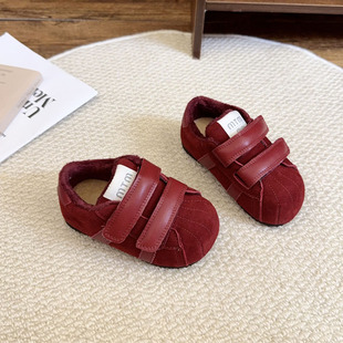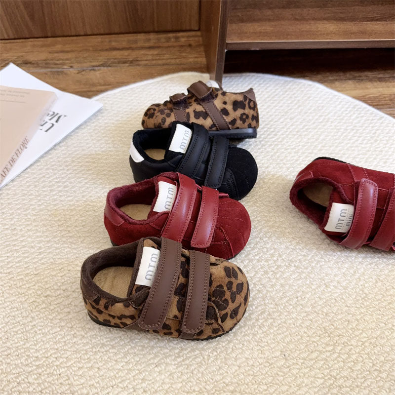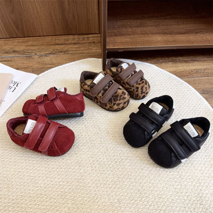 豹纹魔术贴幼童小童女宝宝男绒面软底稳稳步二棉鞋 加绒1一3岁周岁