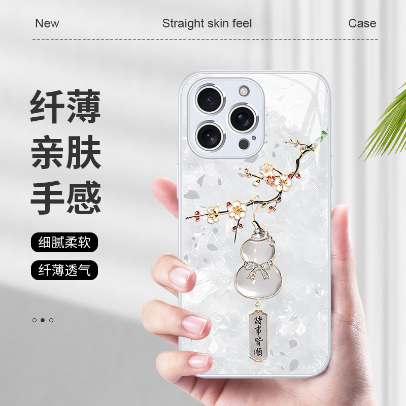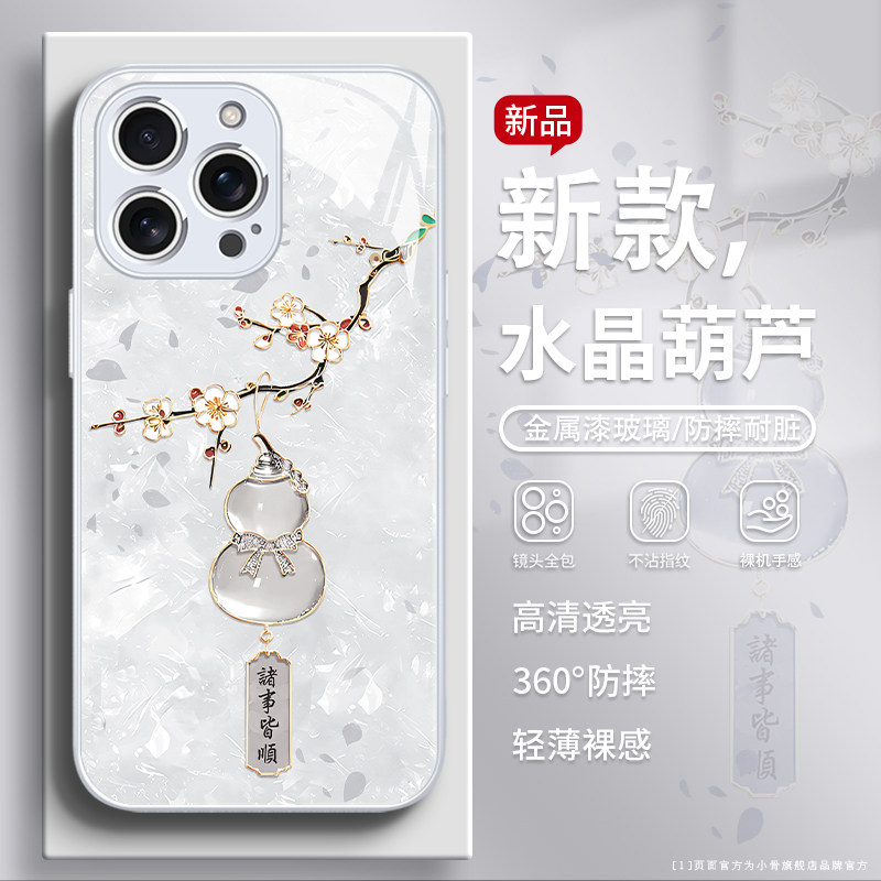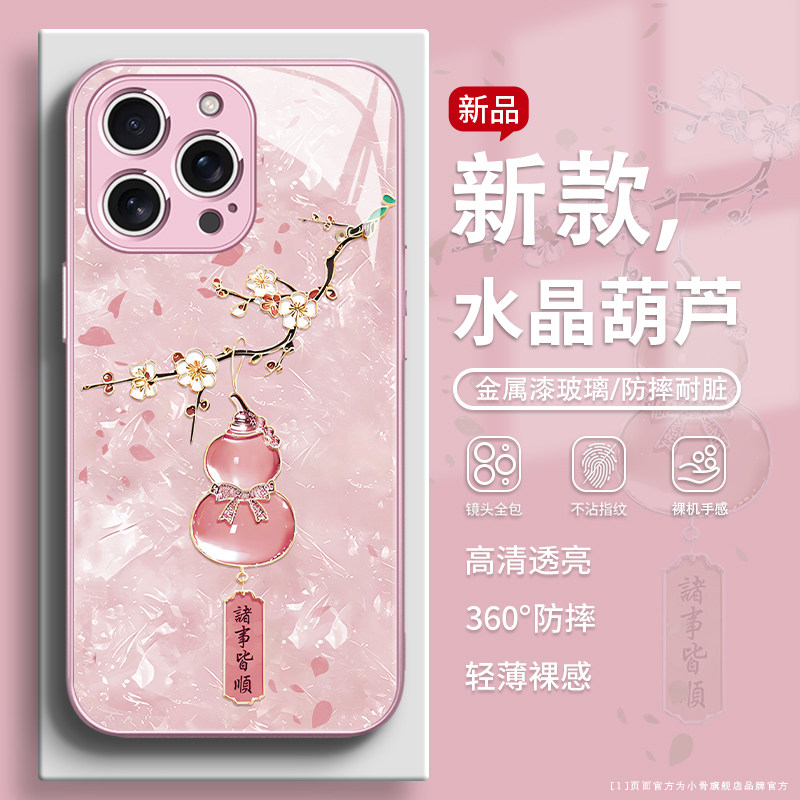 适用苹果17pro手机壳水晶葫芦iPhone16promax新中式 12橙色11高级感xsmax玻璃气质 15plus简约14中国风13女新款