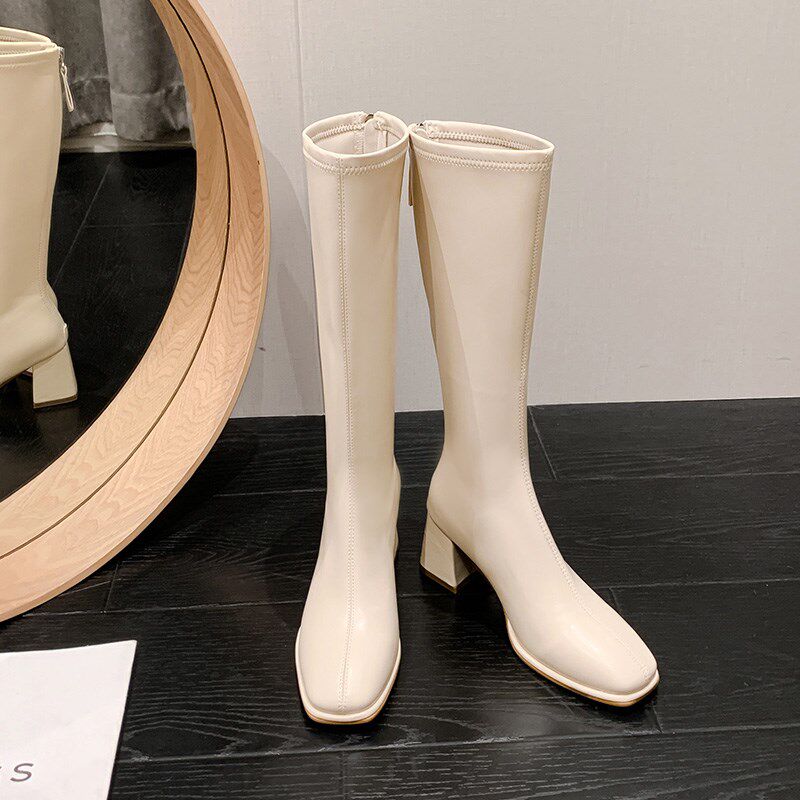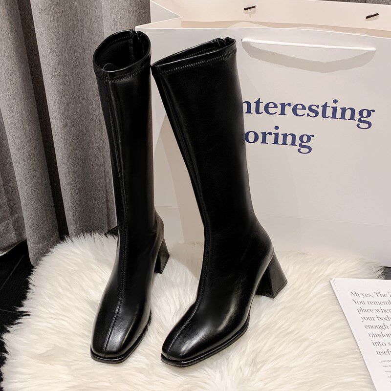 百搭高筒单靴3 时装 小码 女靴313233方头高跟长靴子秋A冬2024年新款