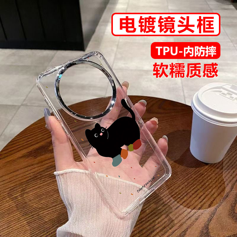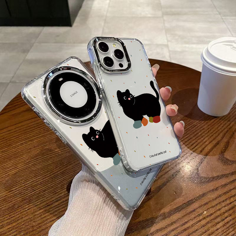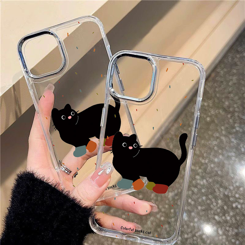 潮牌小黑猫适用于三星GalaxyS22手机壳斜跨GalaxyS22Plus日韩透明壳GalaxyS22Ultra卡通可爱少女保护套Galax