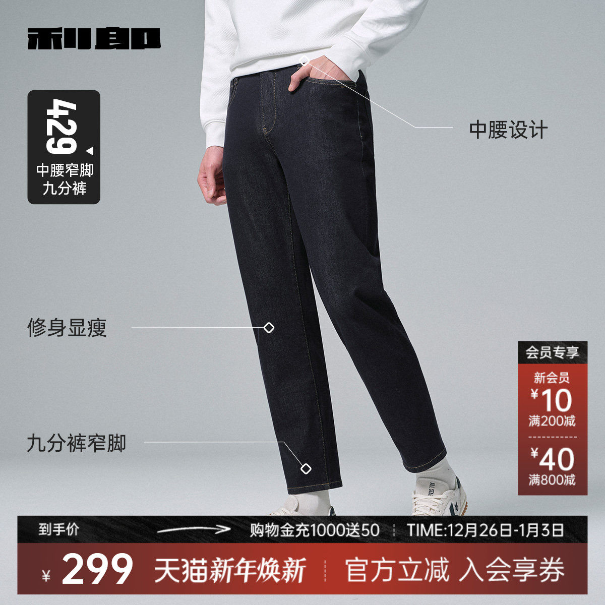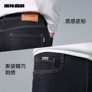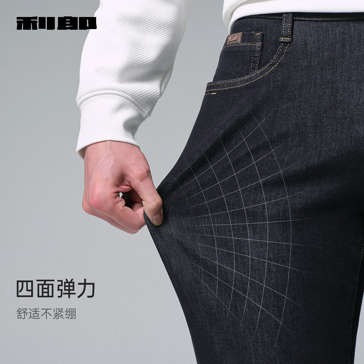 利郎官方牛仔裤 内里磨毛 四面弹 男2025冬保暖九分裤 科技蓝