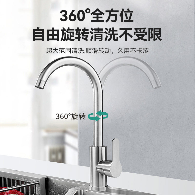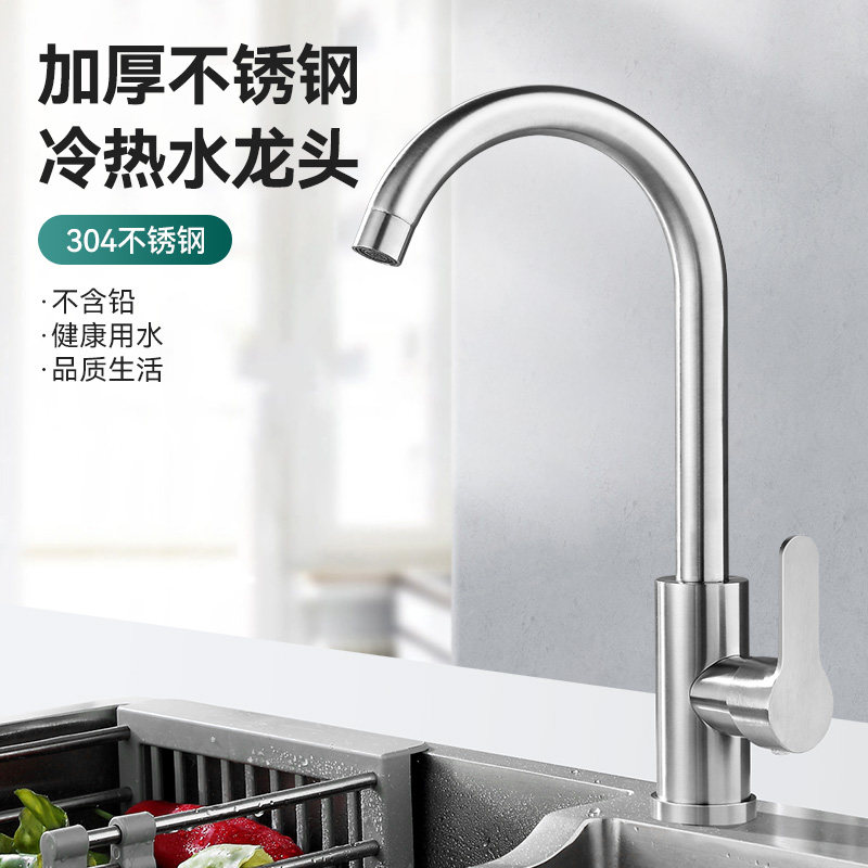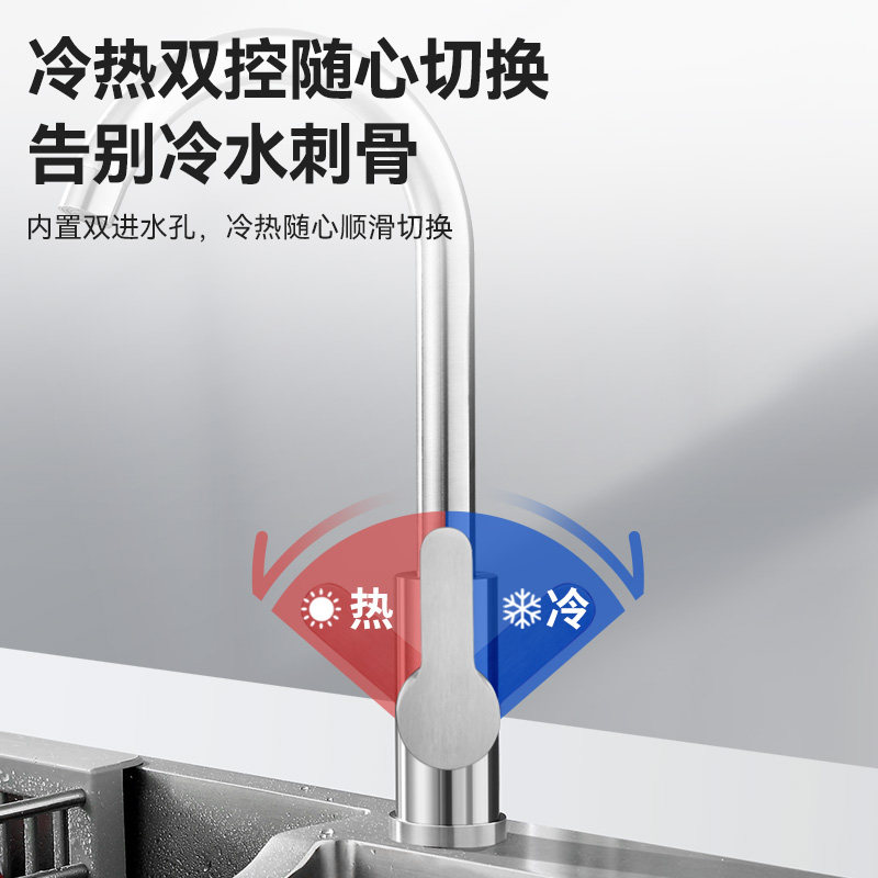 不锈钢厨房水龙头冷热家用防溅水二合一洗菜盆单冷洗手池抽拉热水