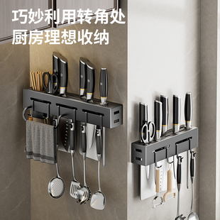 懒角落厨房置物架调味料品收纳刀架壁挂钩杆锅盖多功能免打孔家用