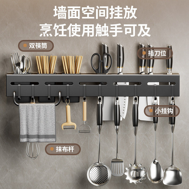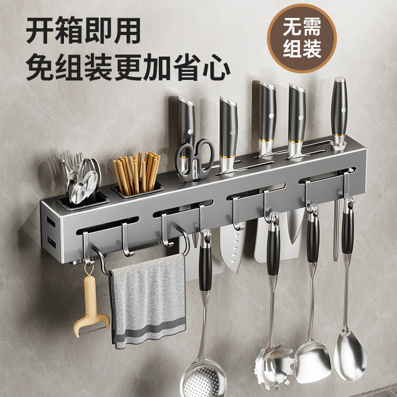不锈钢厨房置物架多功能刀架家用壁挂免打孔筷子筒刀具一体收纳架