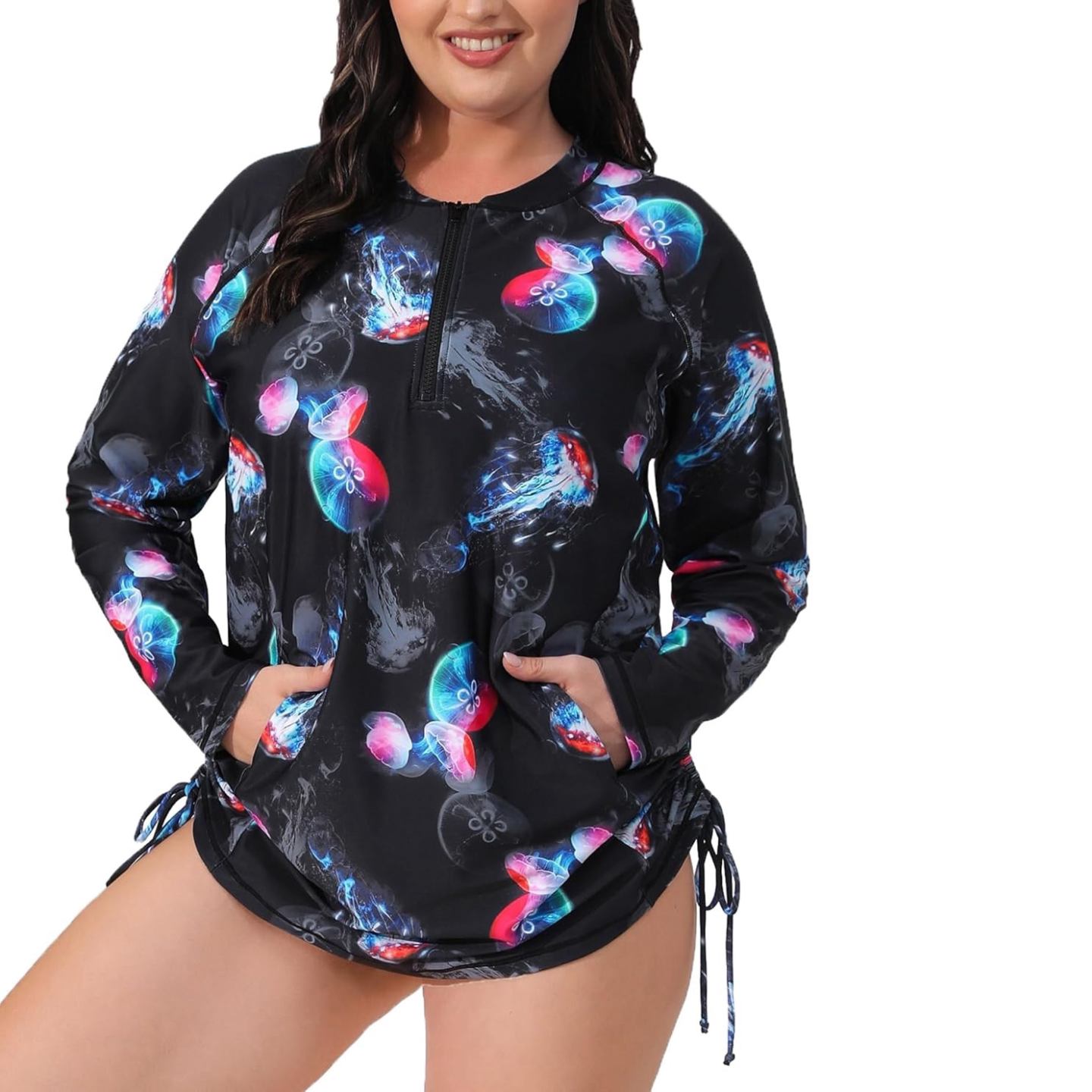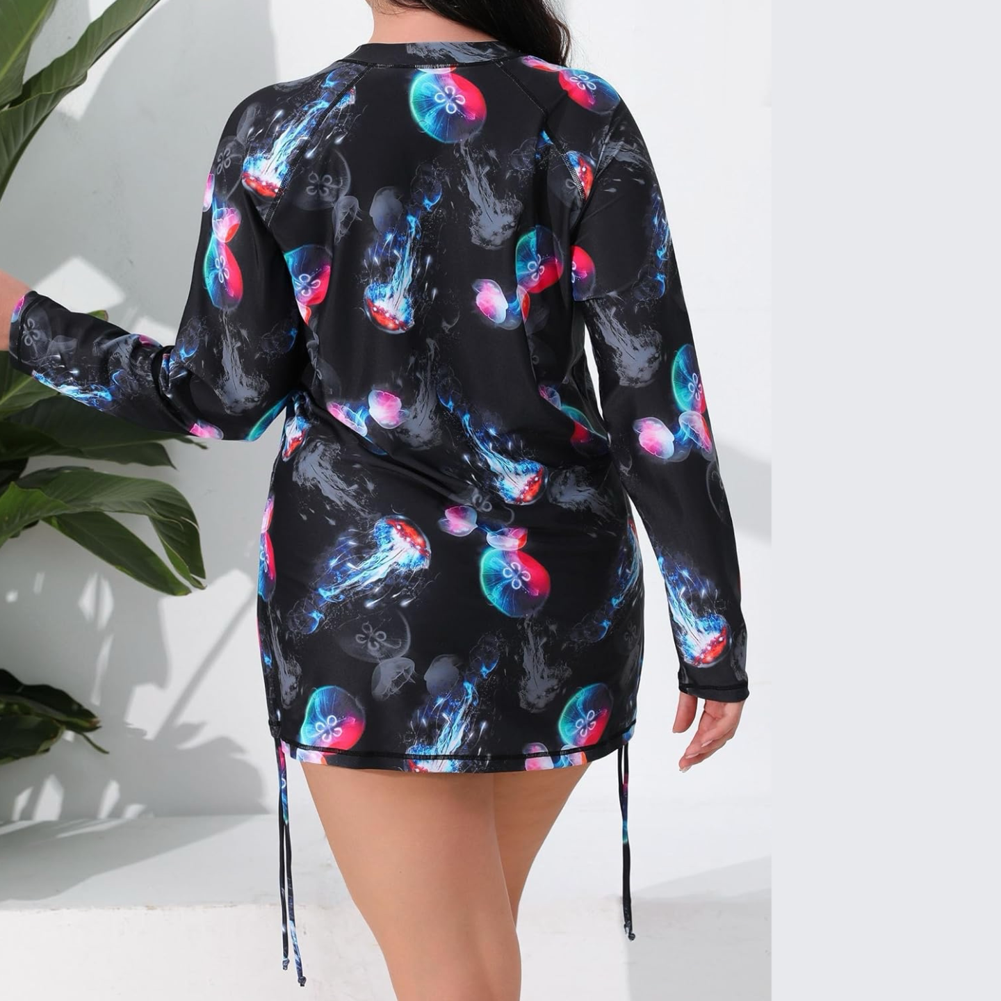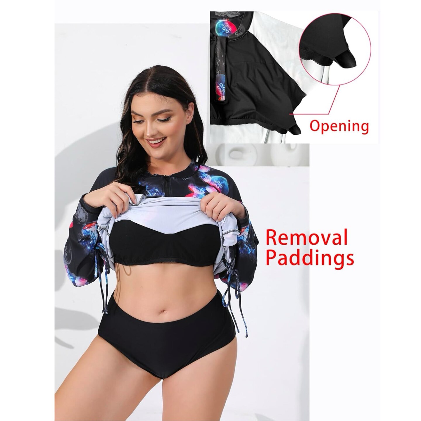 防晒上衣带胸垫 分体泳衣长袖 Amber加肥UPF50胖MM大码 女士保守长款