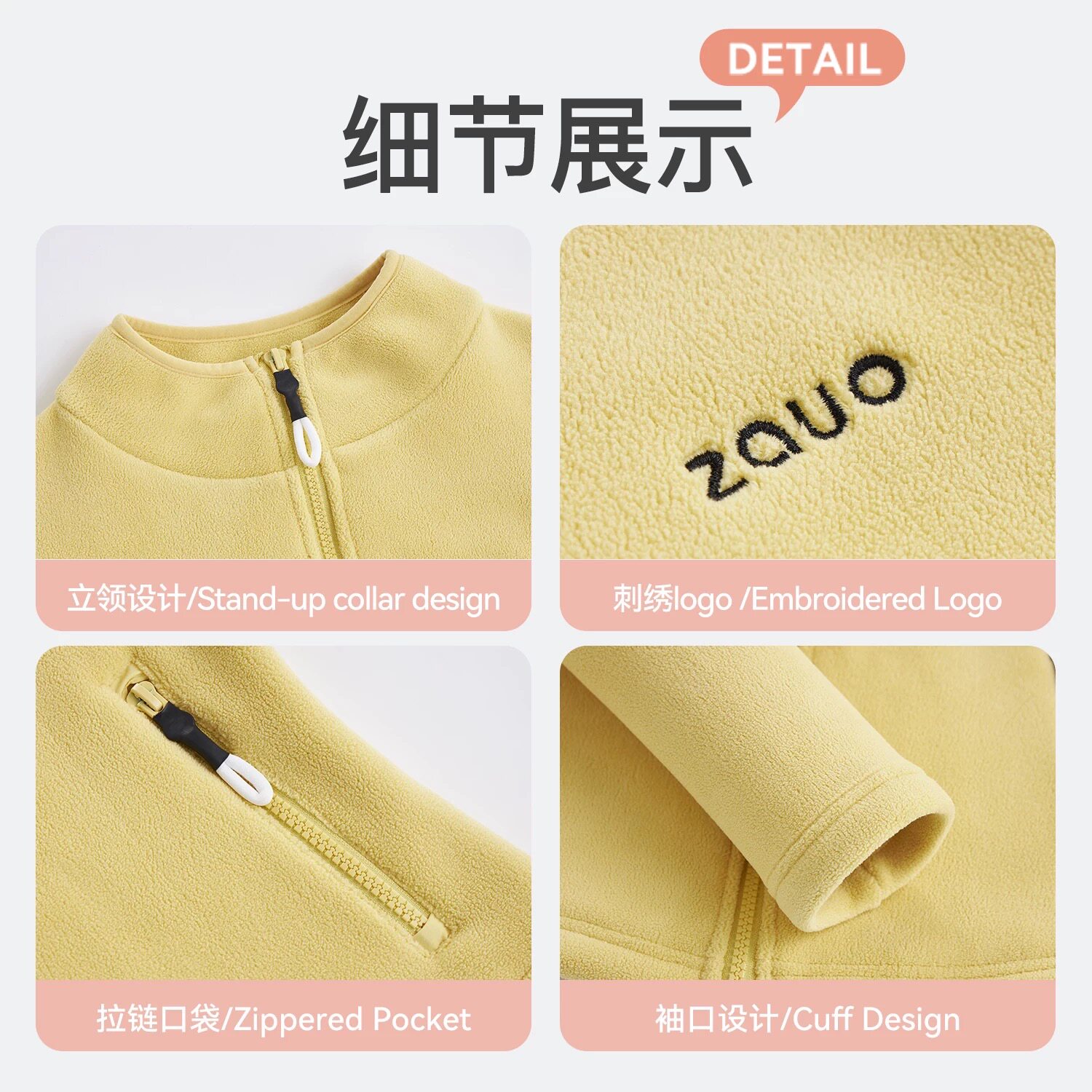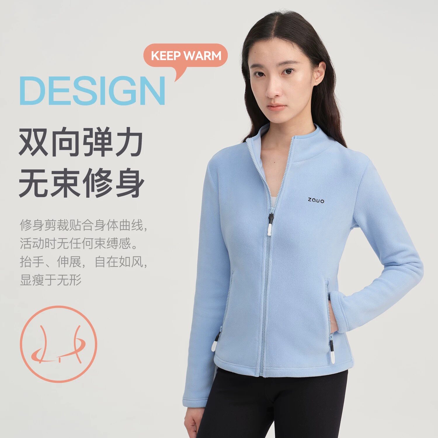 韩国zauo秋冬奥粒绒修身 保暖抓绒立领冲锋衣摇粒绒内胆 外套女短款