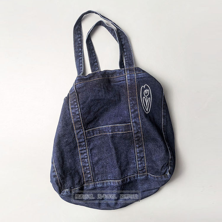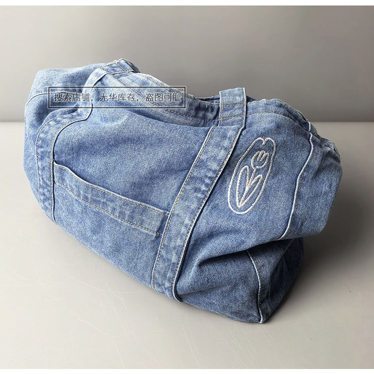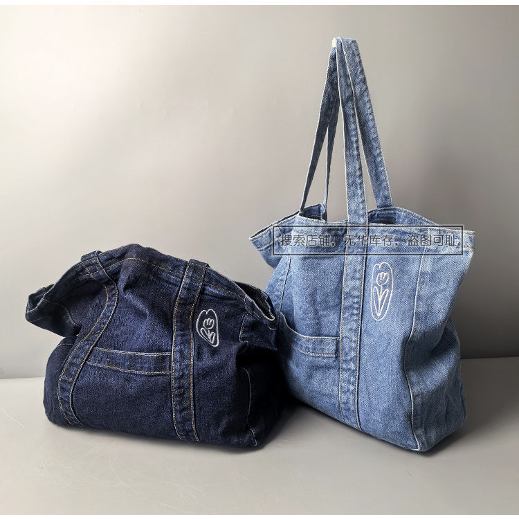 个性 刺绣郁金香 单肩包休闲慵懒手提托特包牛仔包 全部实拍图